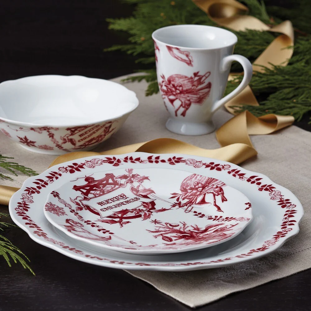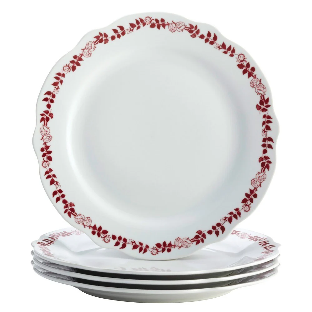 BonJour Dinnerware Yuletide Garland Print 4-piece Porcelain Stoneware Fluted Dinner Plate Set