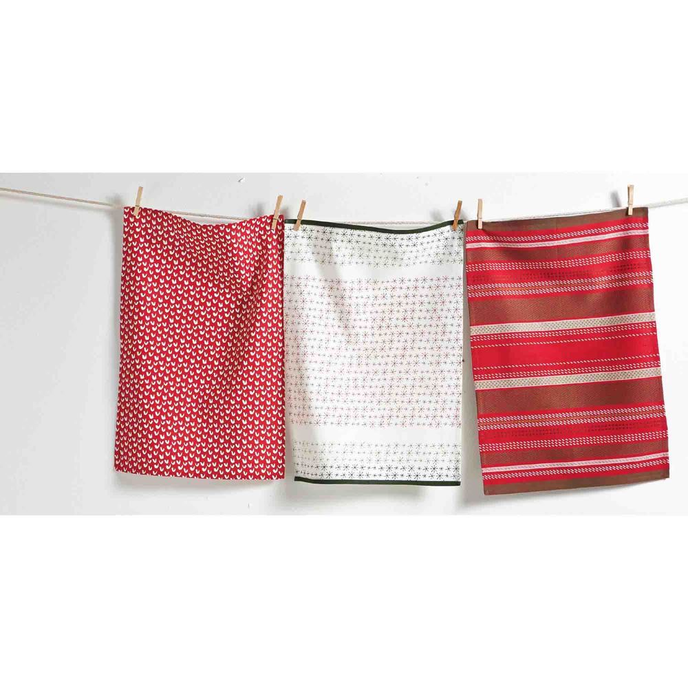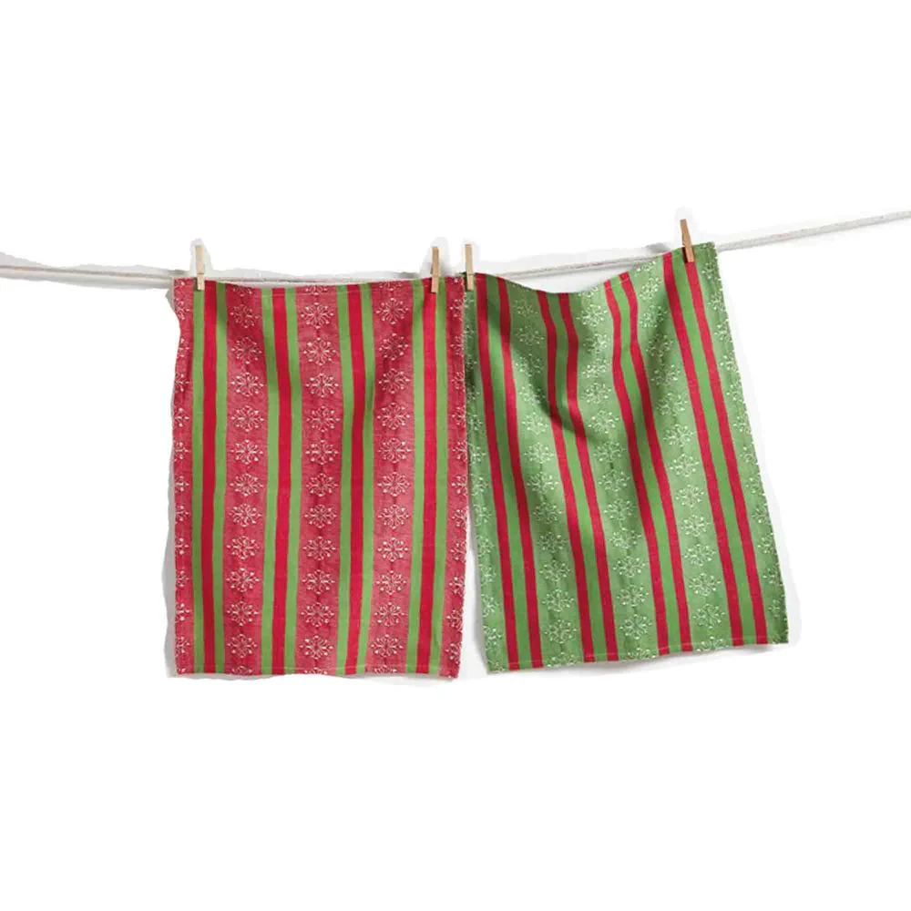 Tag Snowflake Stripe Jacquard Dishtowel, Set of 2- Red/Green