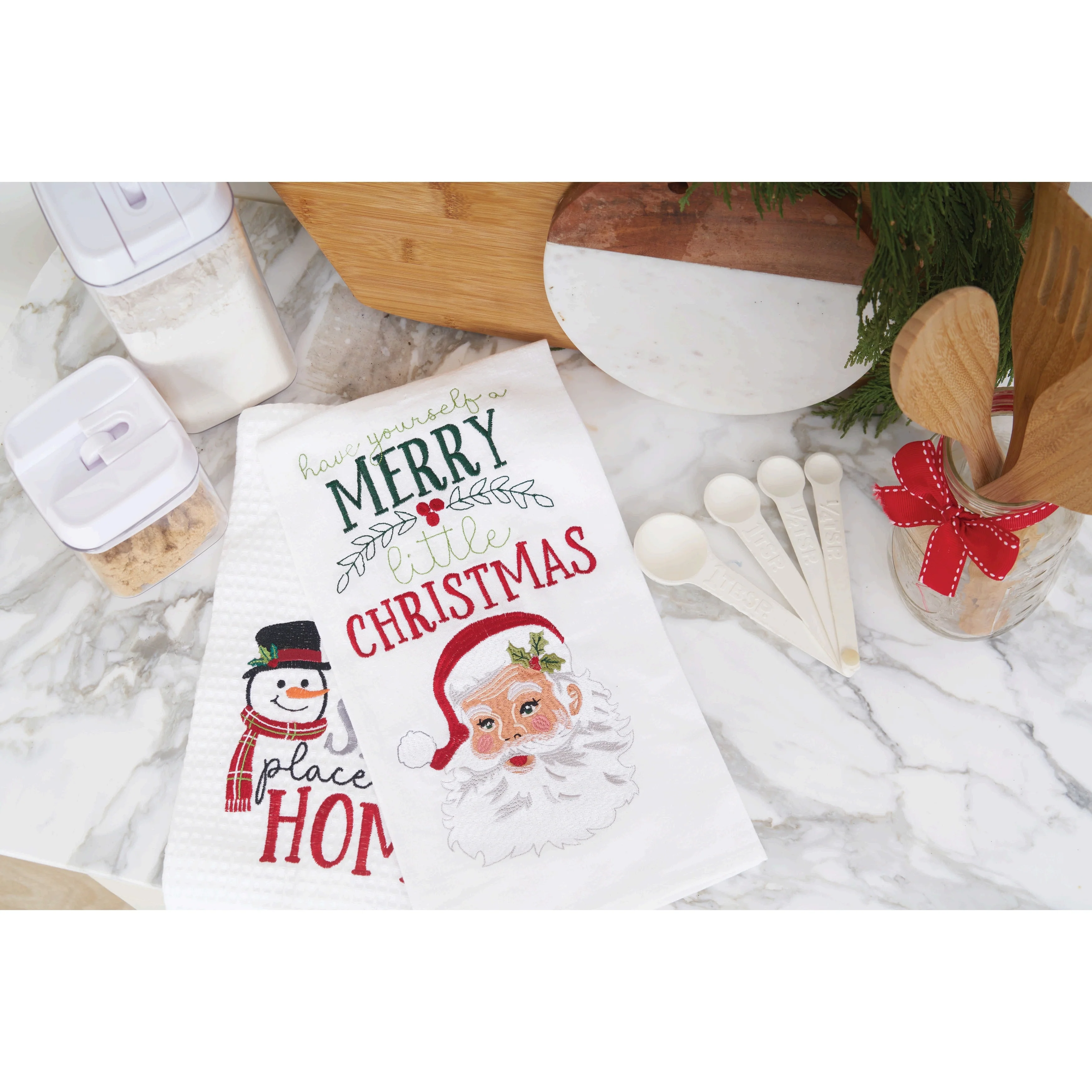 27" x 18" Christmas Winter "There's Snow Place Like Home" Sentiment with Snowman Cotton Waffle Weave Kitchen Dish Towel