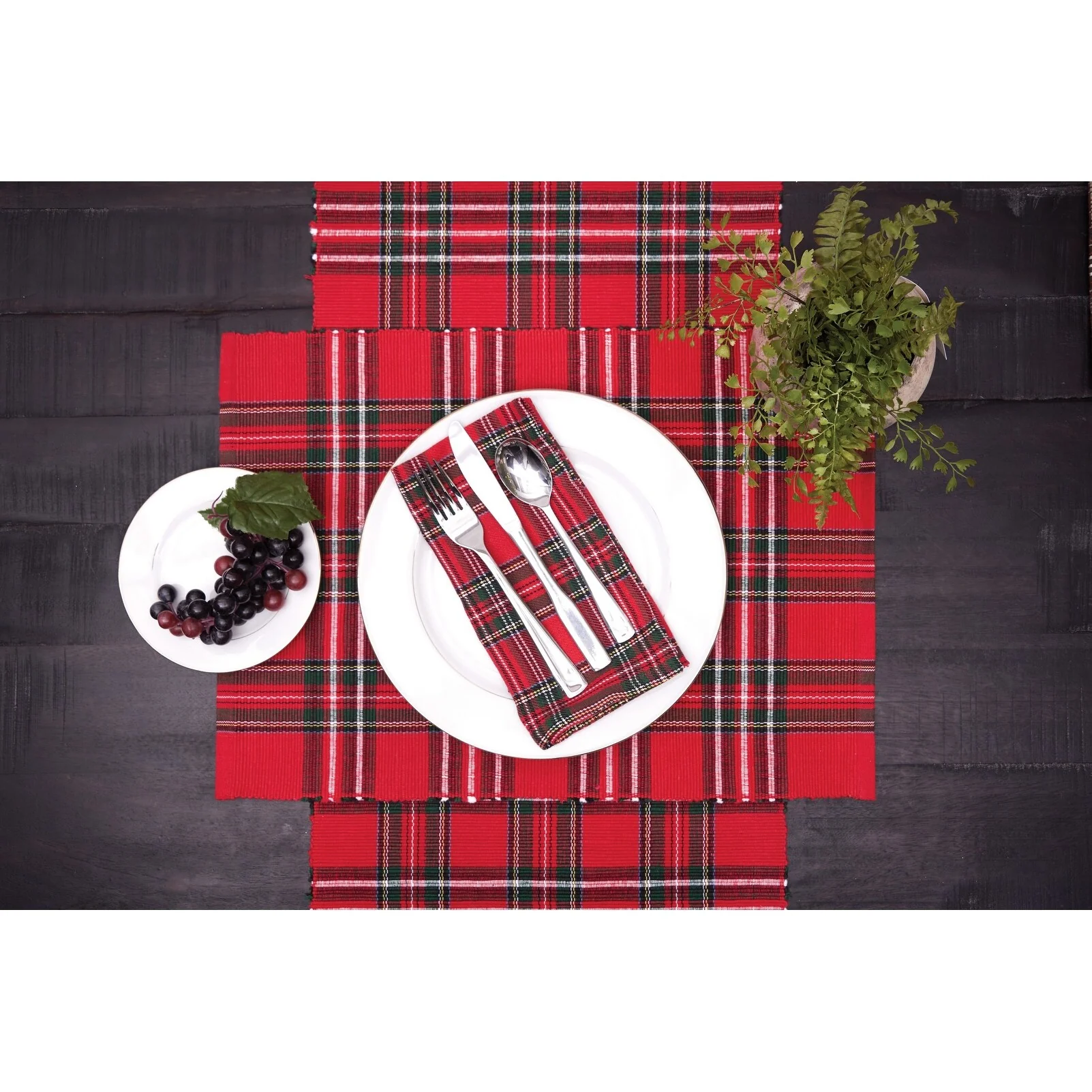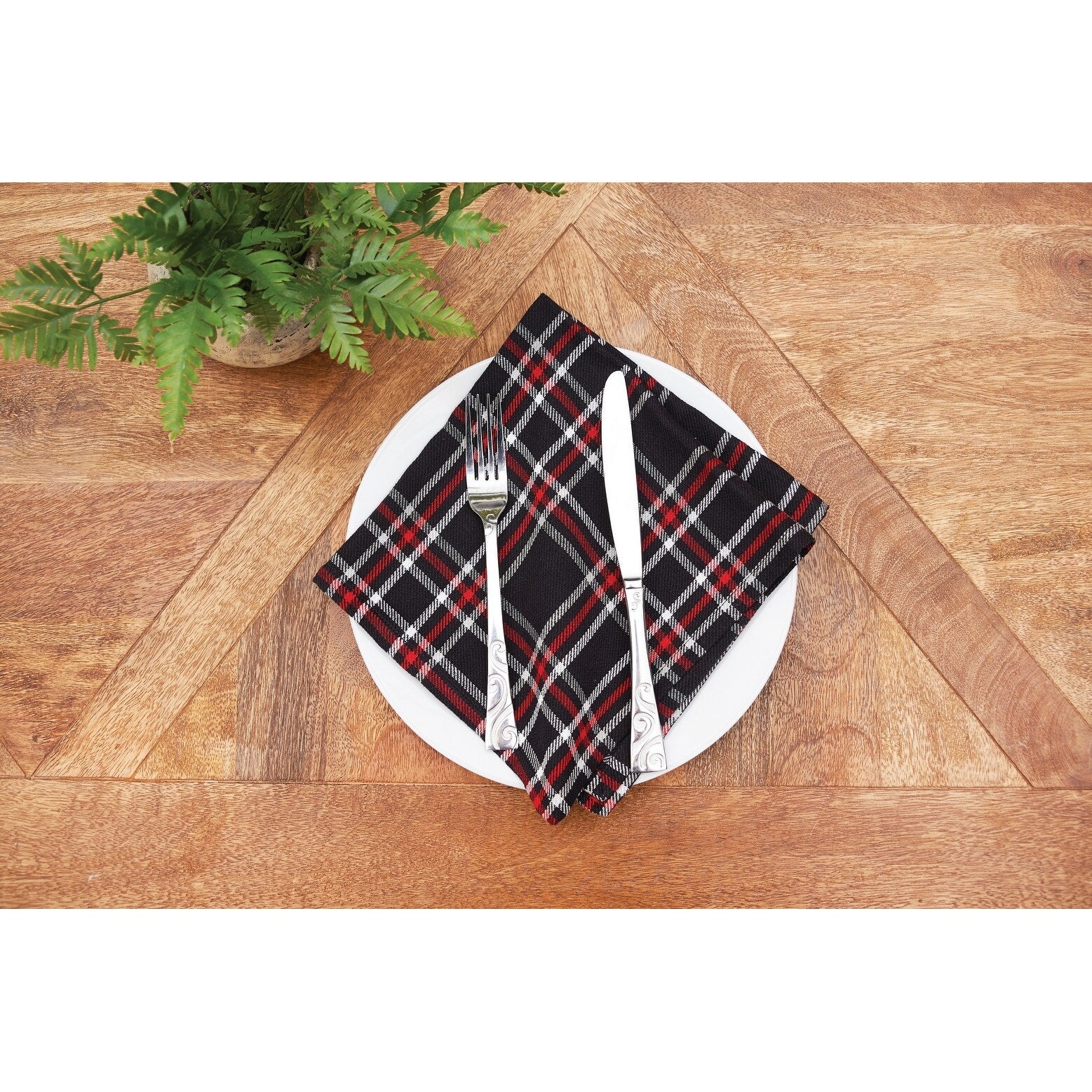 Poinsettia Plaid Woven Napkin Set of 6 - Set of 6