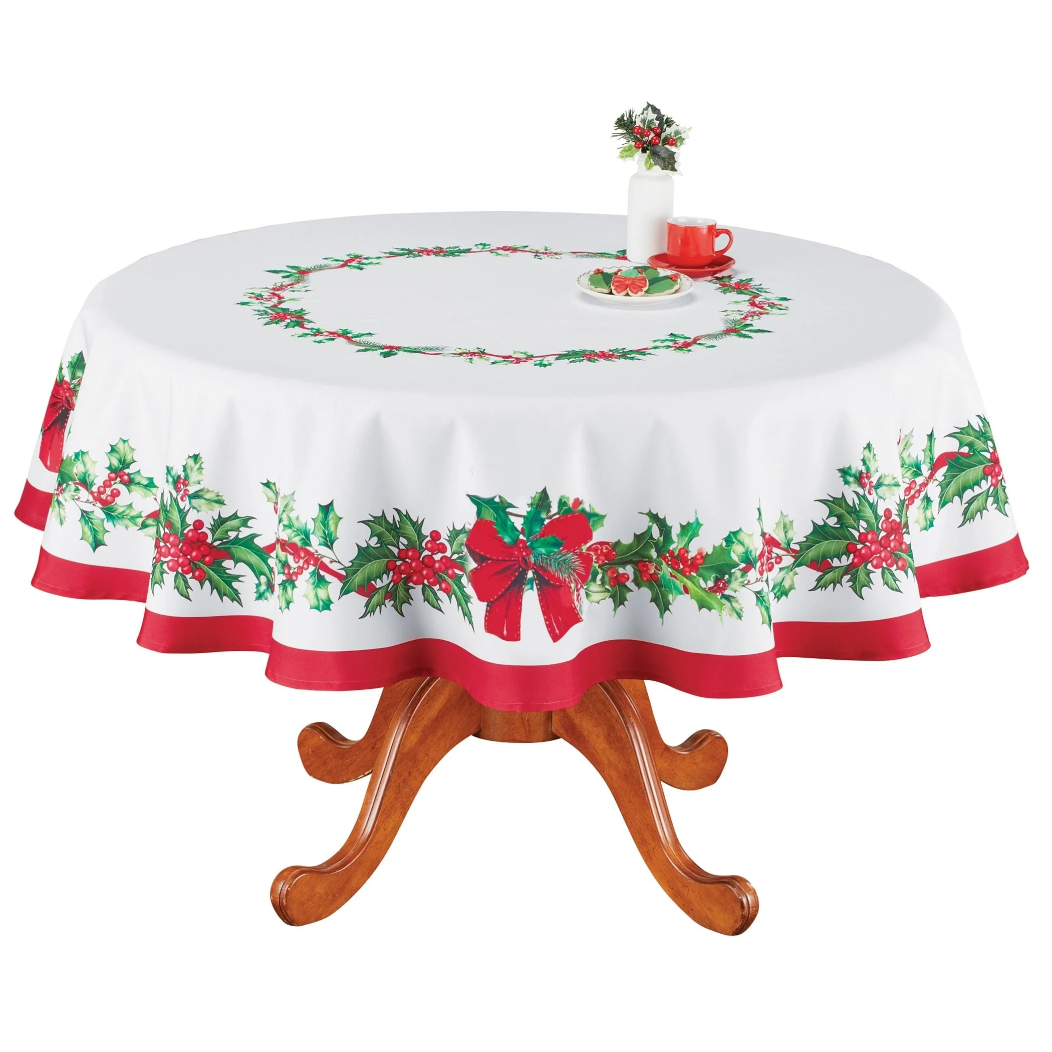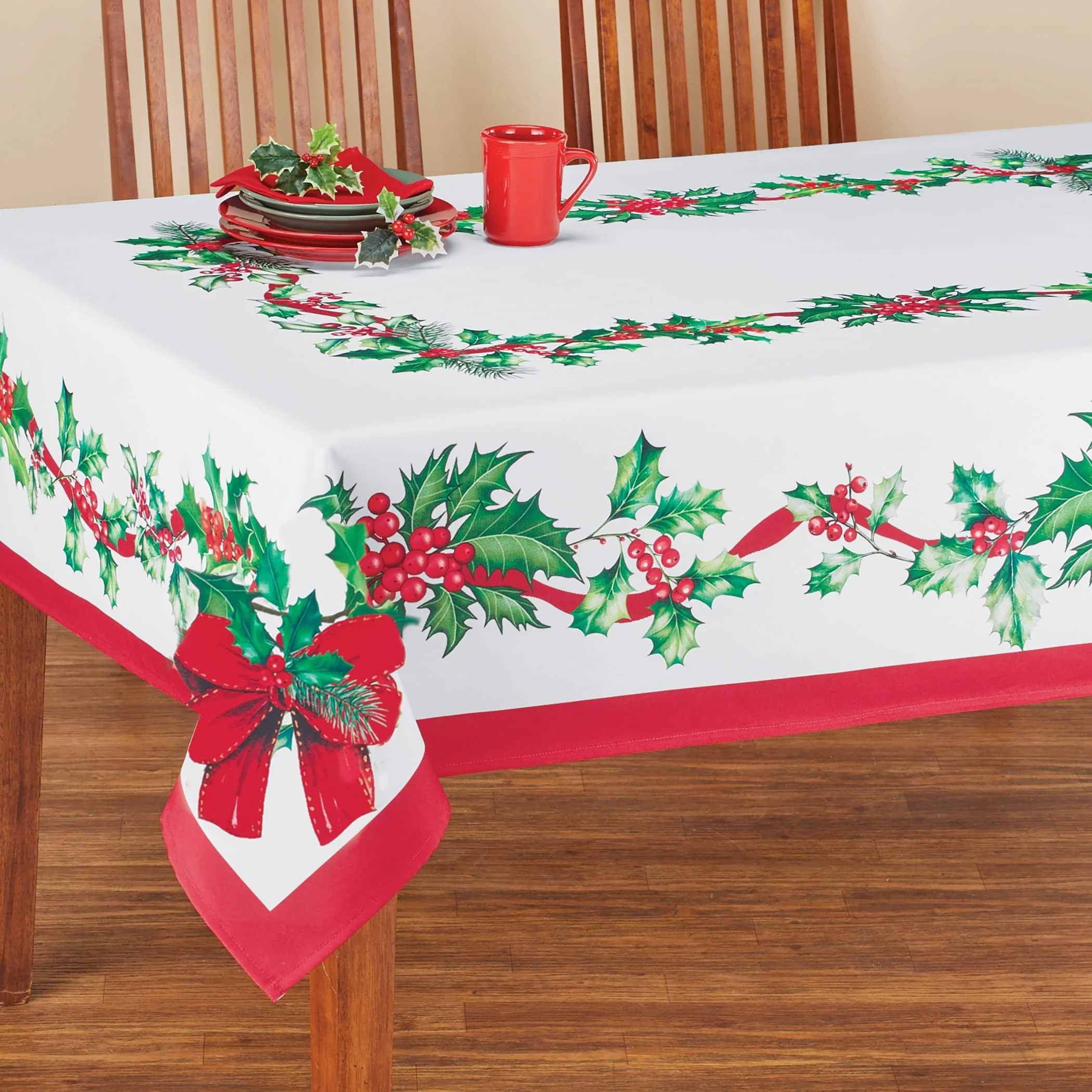 Festive Holly Berry Colorful Printed Tablecloth