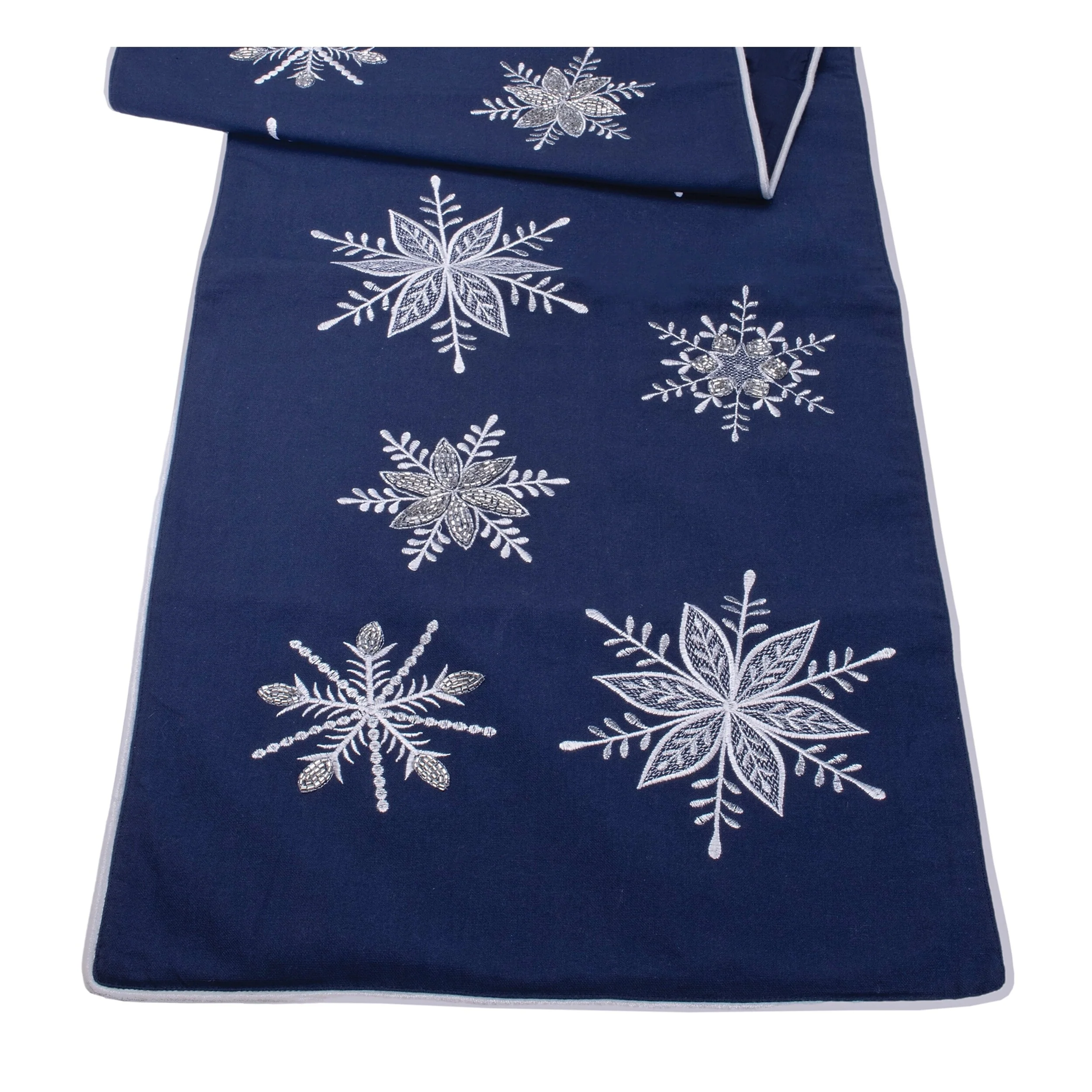 Embroidered Snowflake Table Runner 72"L