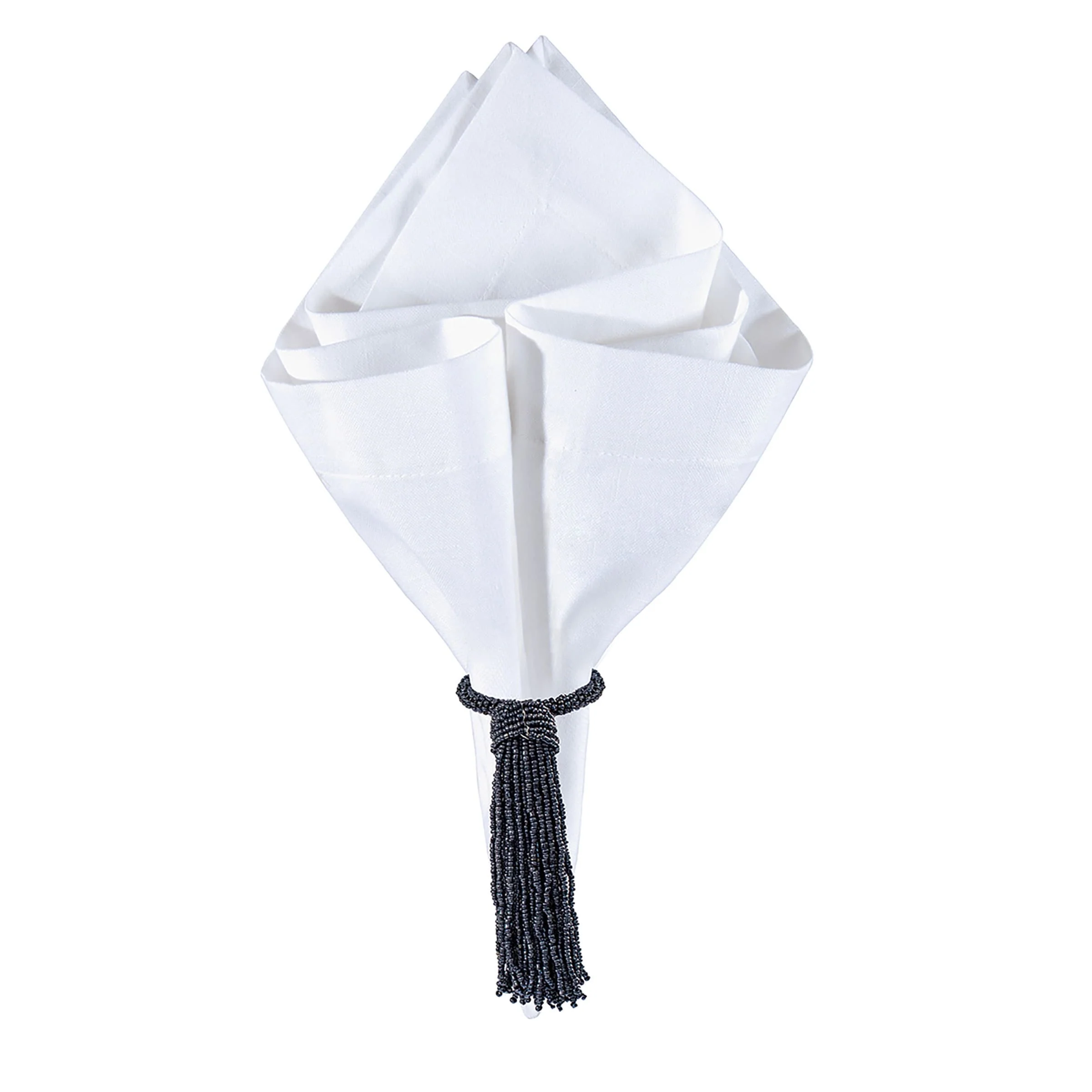 Beaded Tassle Hematite Napkin Ring Set of 6 - Set of 6