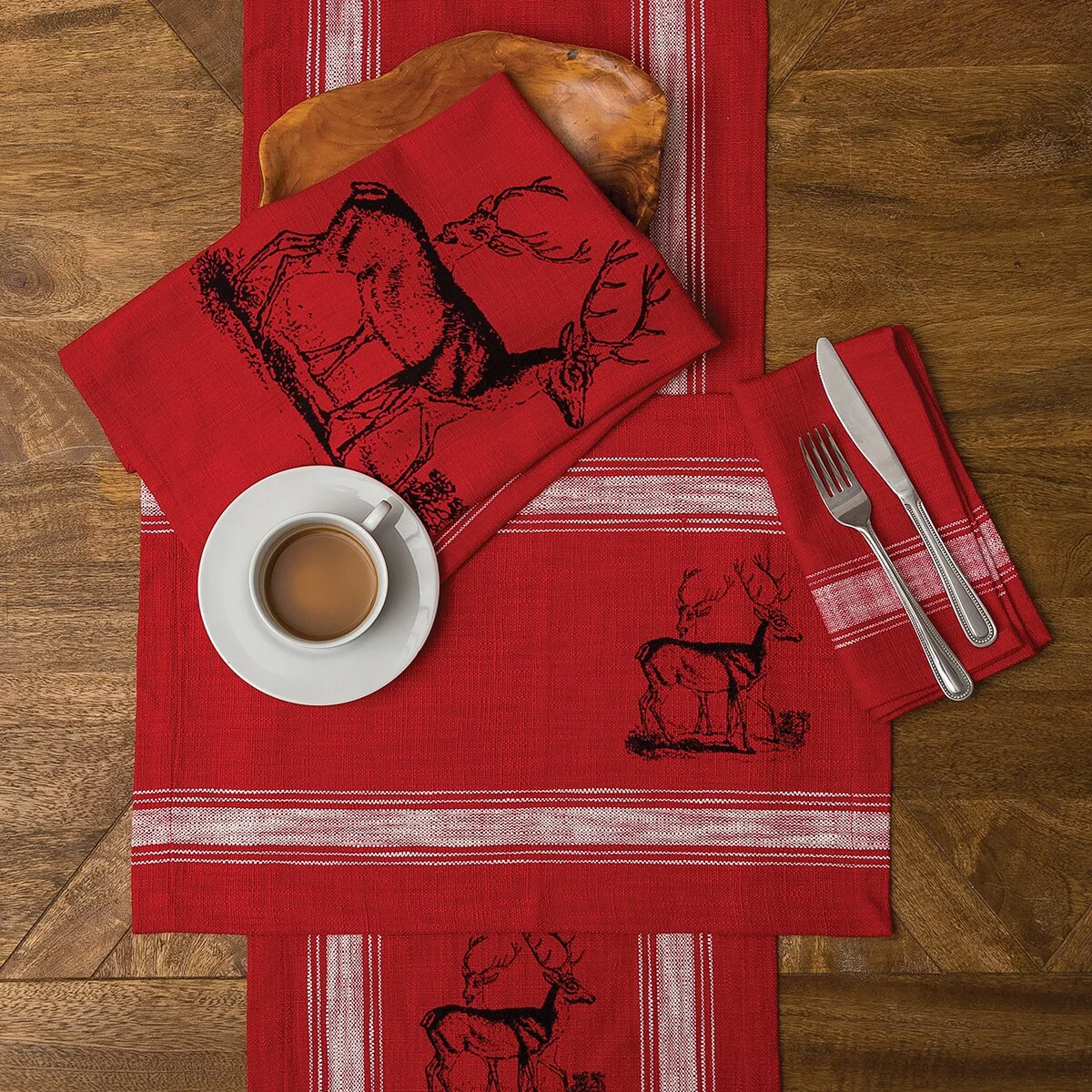 Deer Embroidered and Printed Table Runner