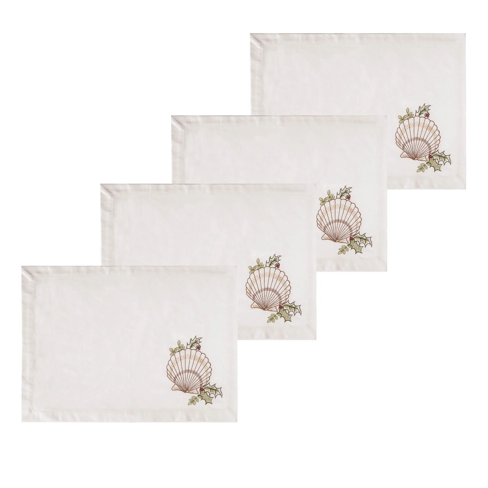 Shells With Holly Single Embroidered Placemat Set of 4 - Set of 4