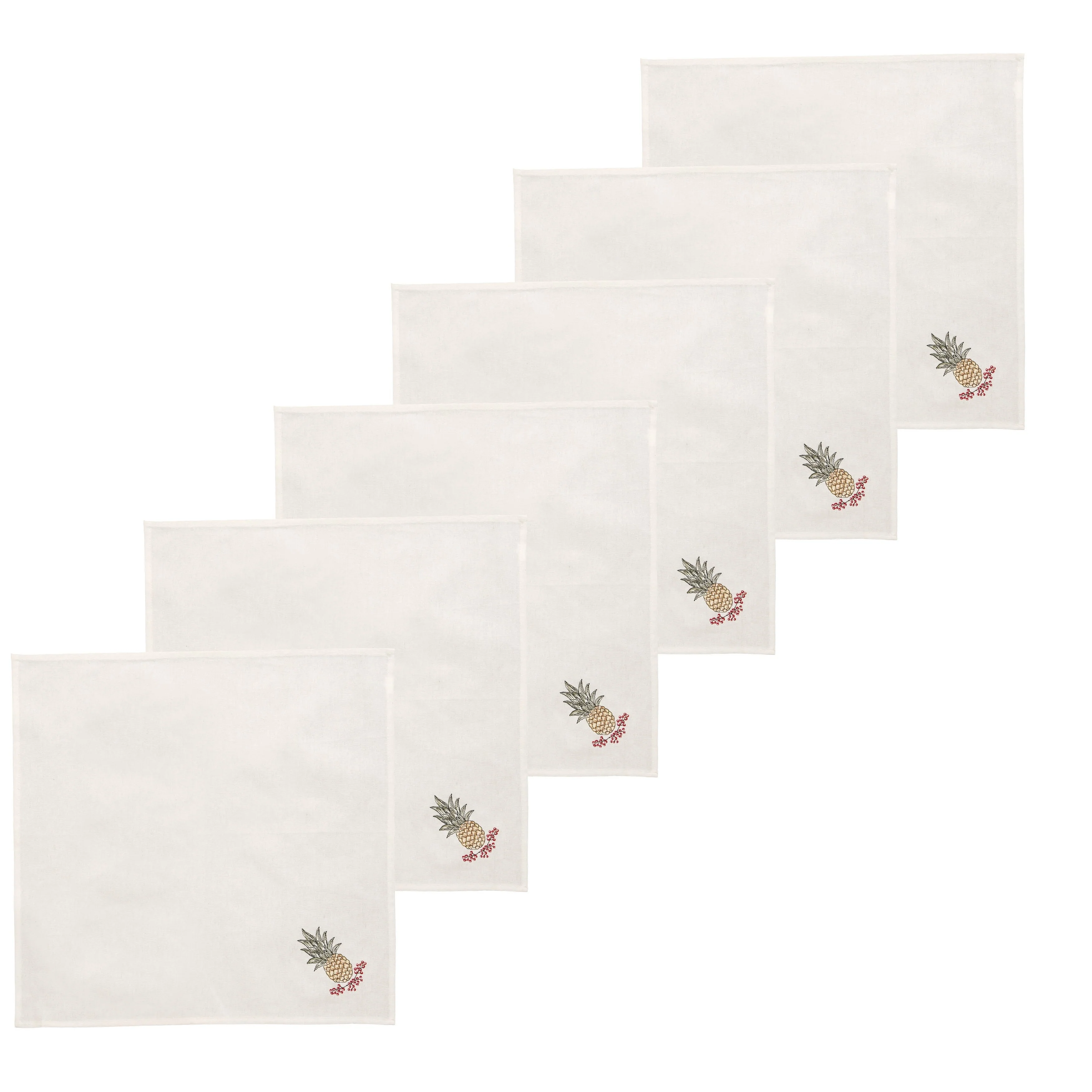 Pineapple Wreath Cotton Embroidered Napkin Set of 6 - Ivory - Set of 6