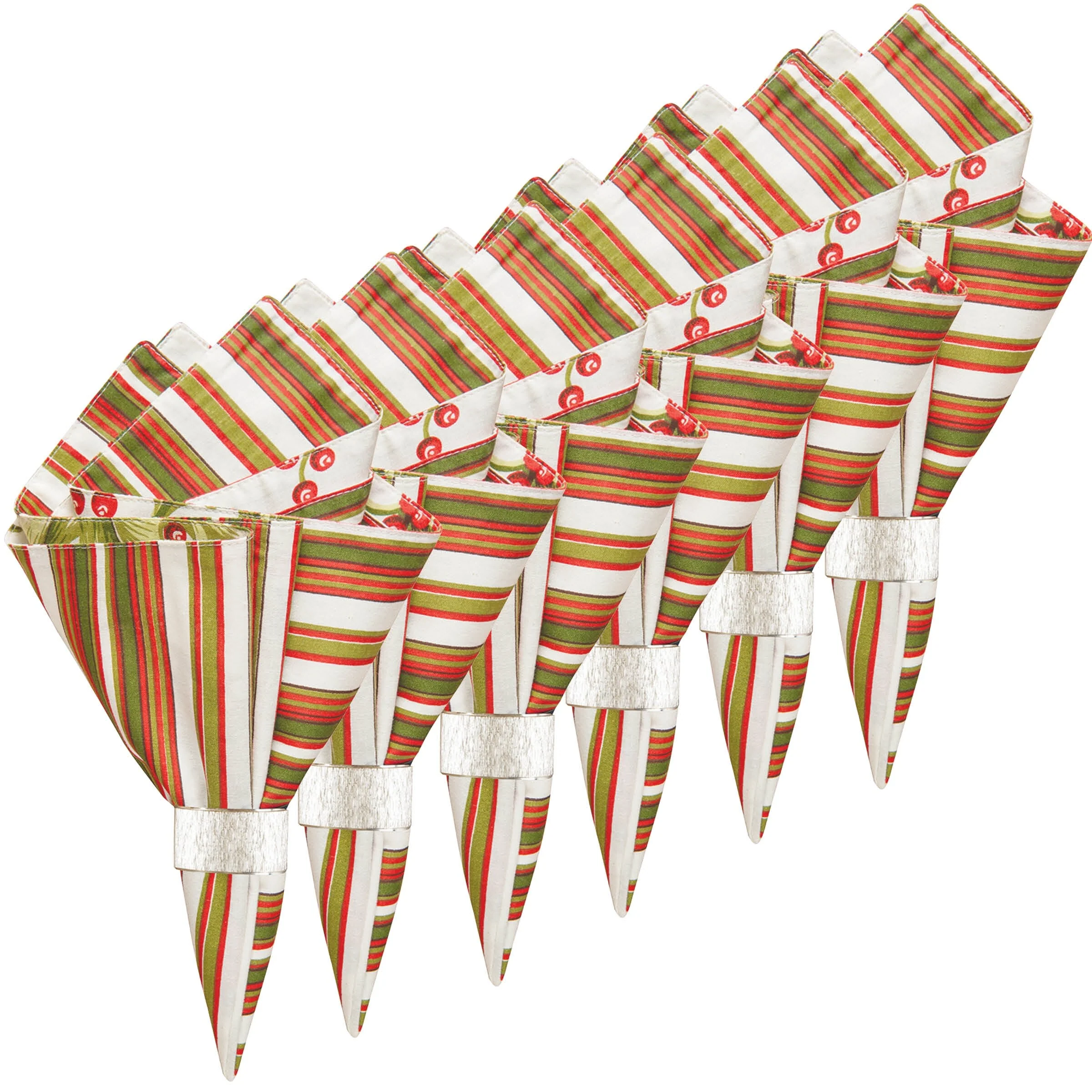 Mistletoe Cream Cotton Reversible Napkin Set of 6 - Set of 6
