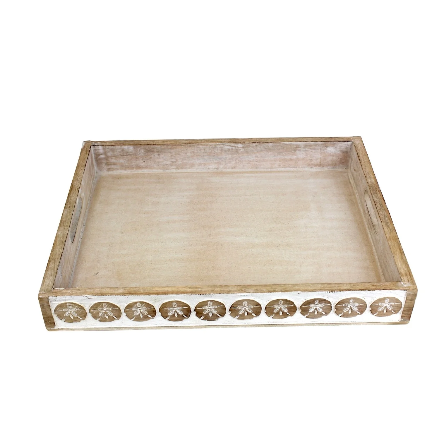 17.7" Wood Sanddollar Whitewash Tray