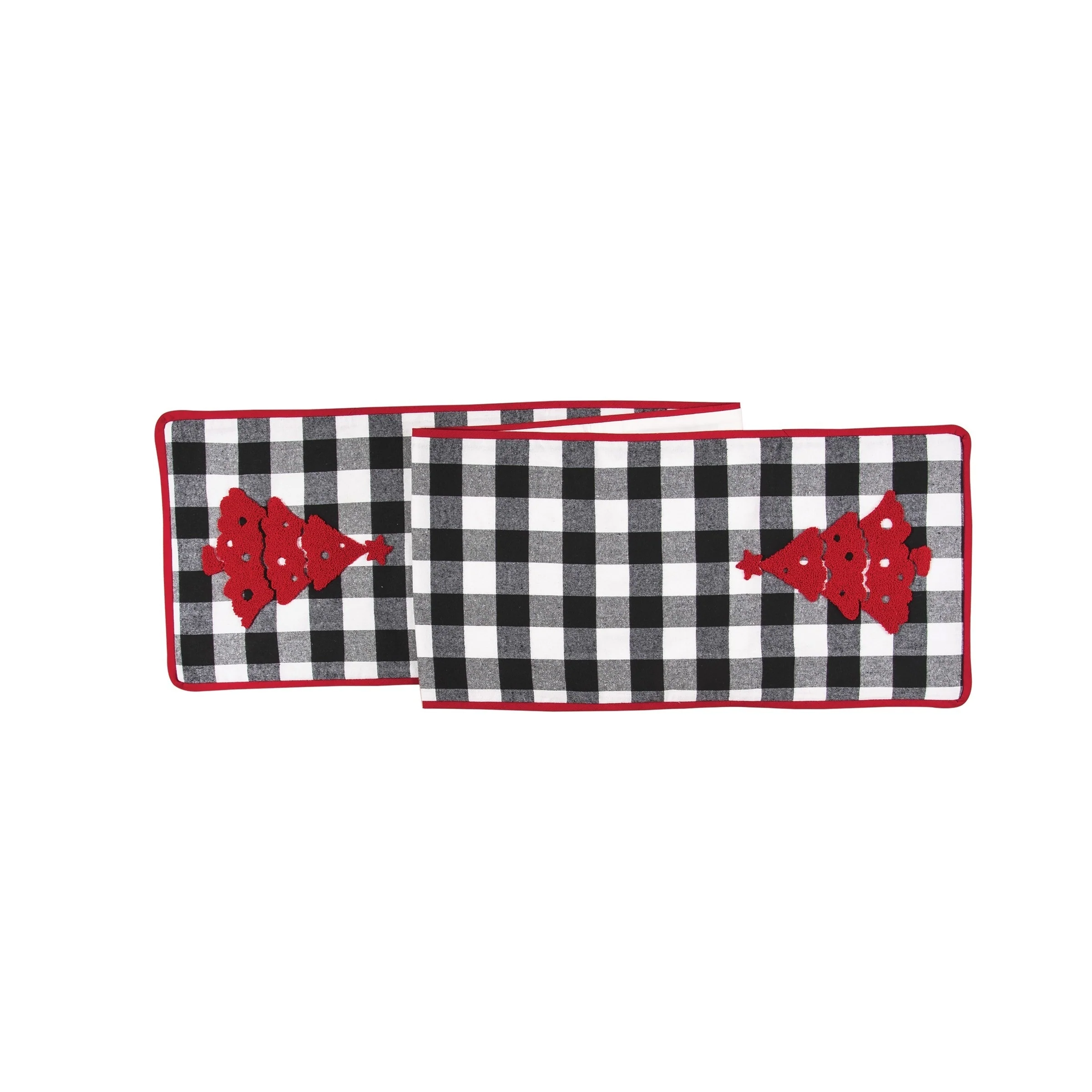 72" x 13" Christmas Holiday Red Cardinal with Wreath Red & Black Plaid Cotton Table Runner