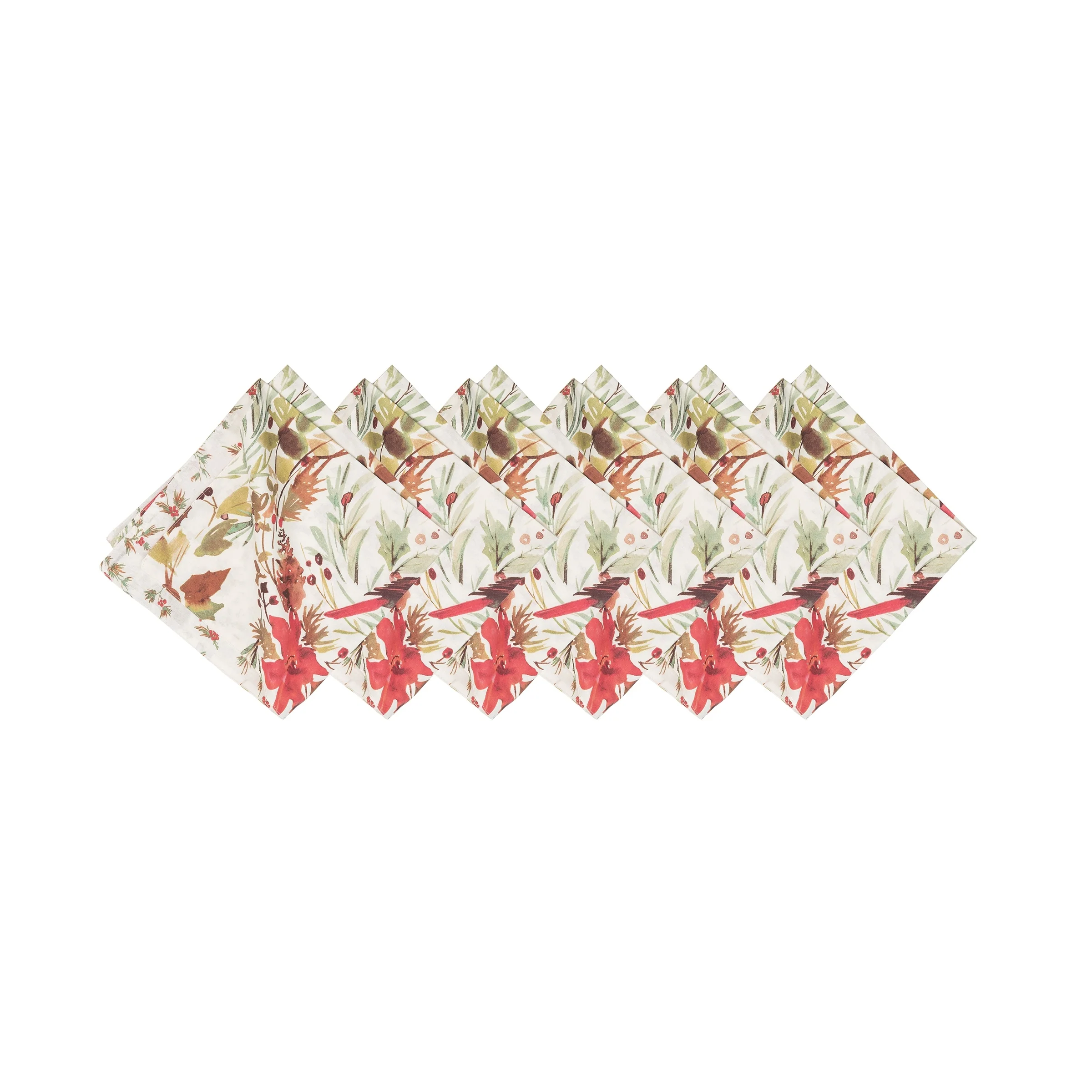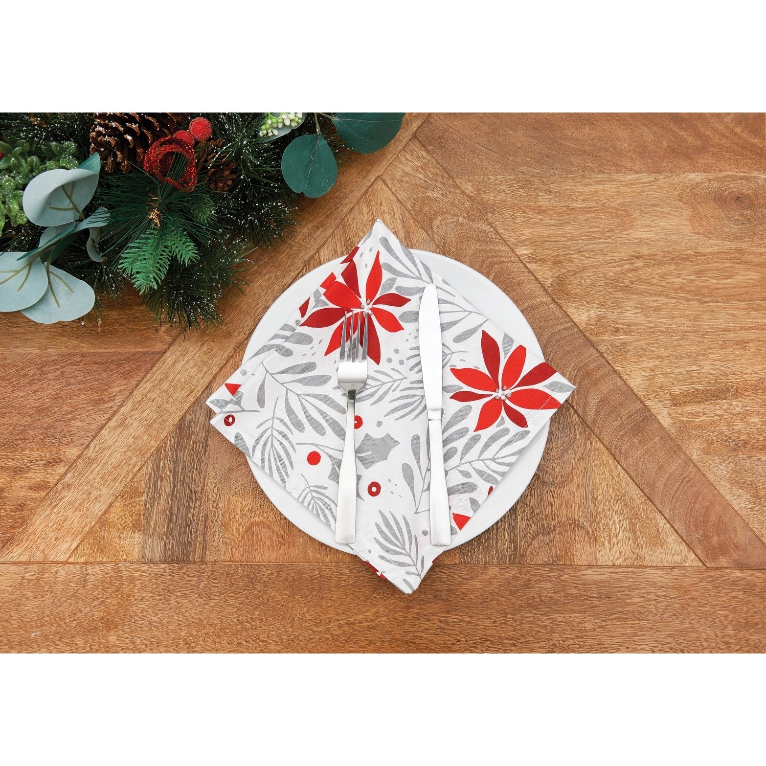 Poinsettia Christmas Printed Christmas Winter Napkin Set of 6 - Set of 6