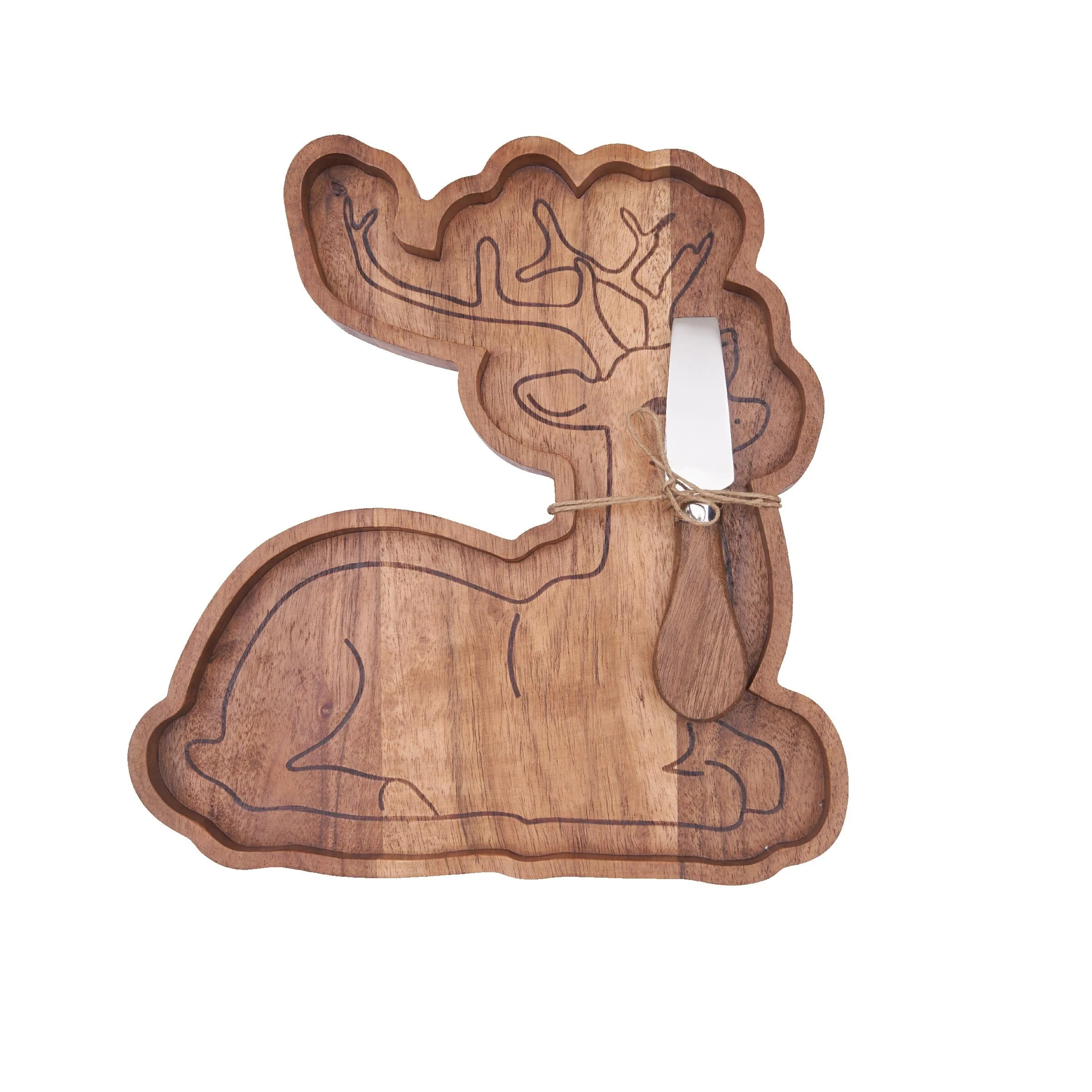 Reindeer Shaped Wooden Serving Board with Spreader 10.75 x11.00-in.