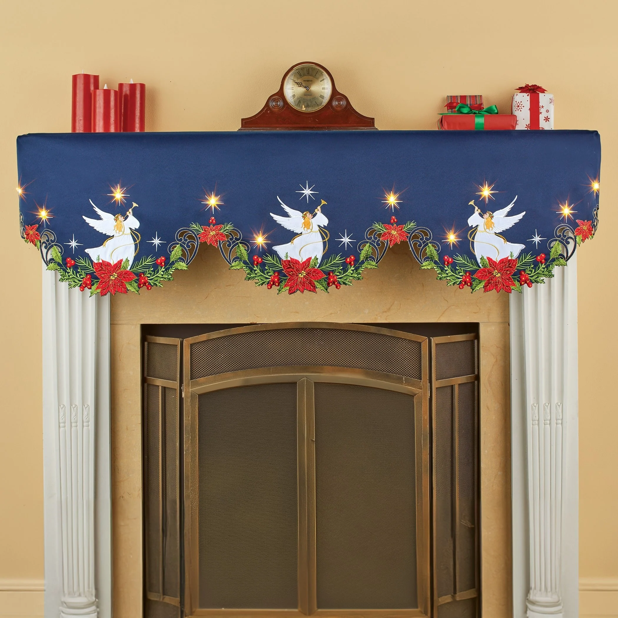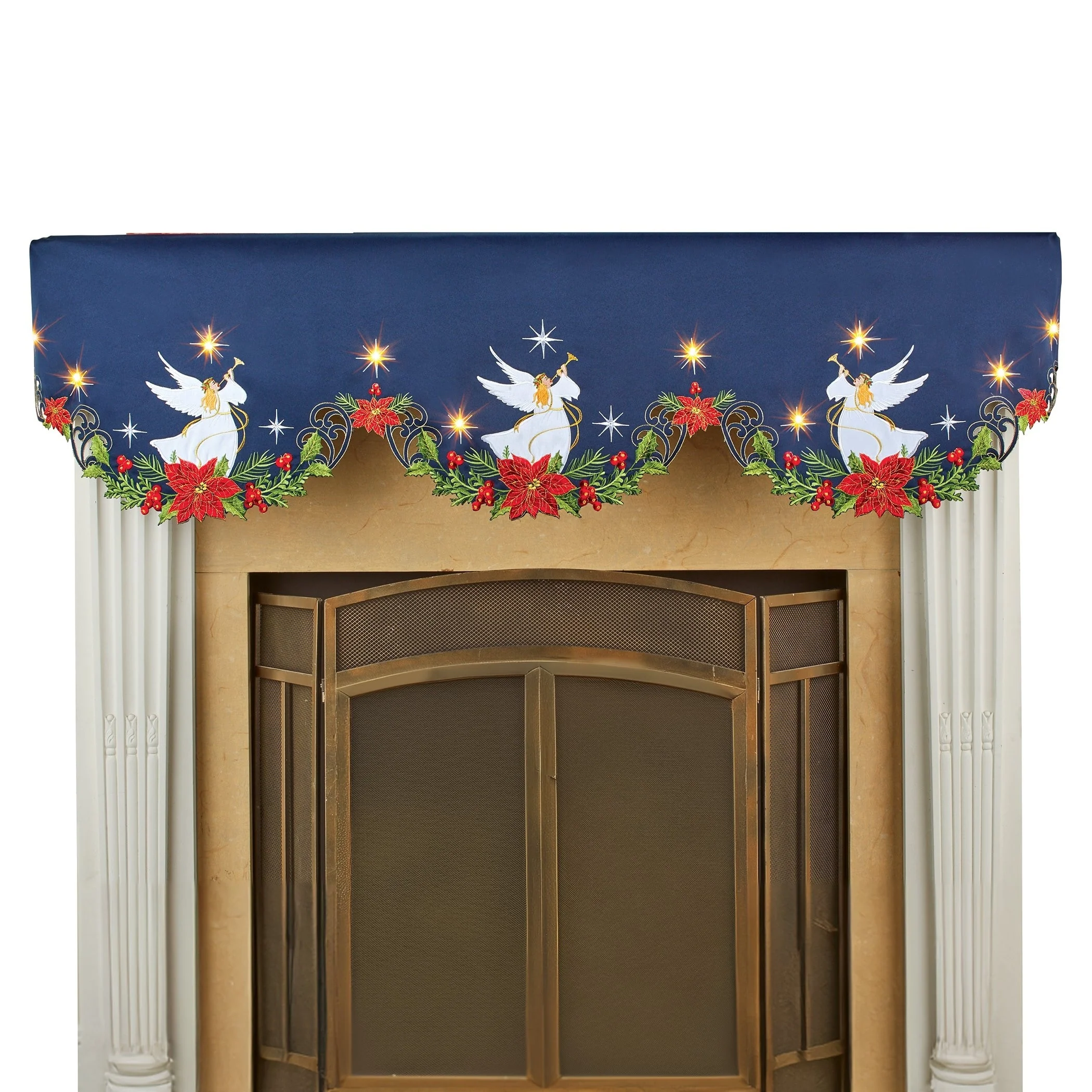 Holiday Angel Navy Blue Embroidered Mantel Scarf with LED Lights - 18.500 x 13.000 x 0.250