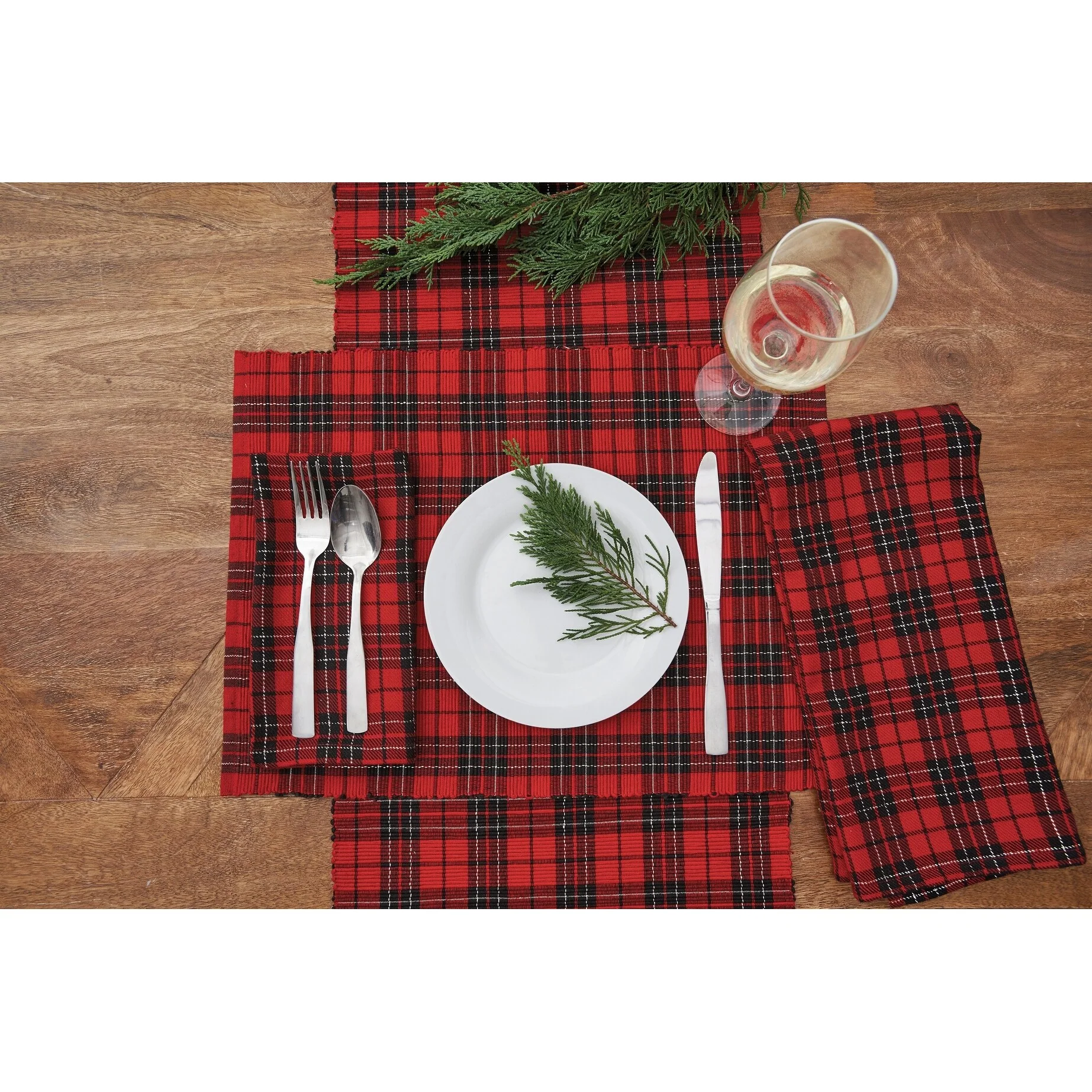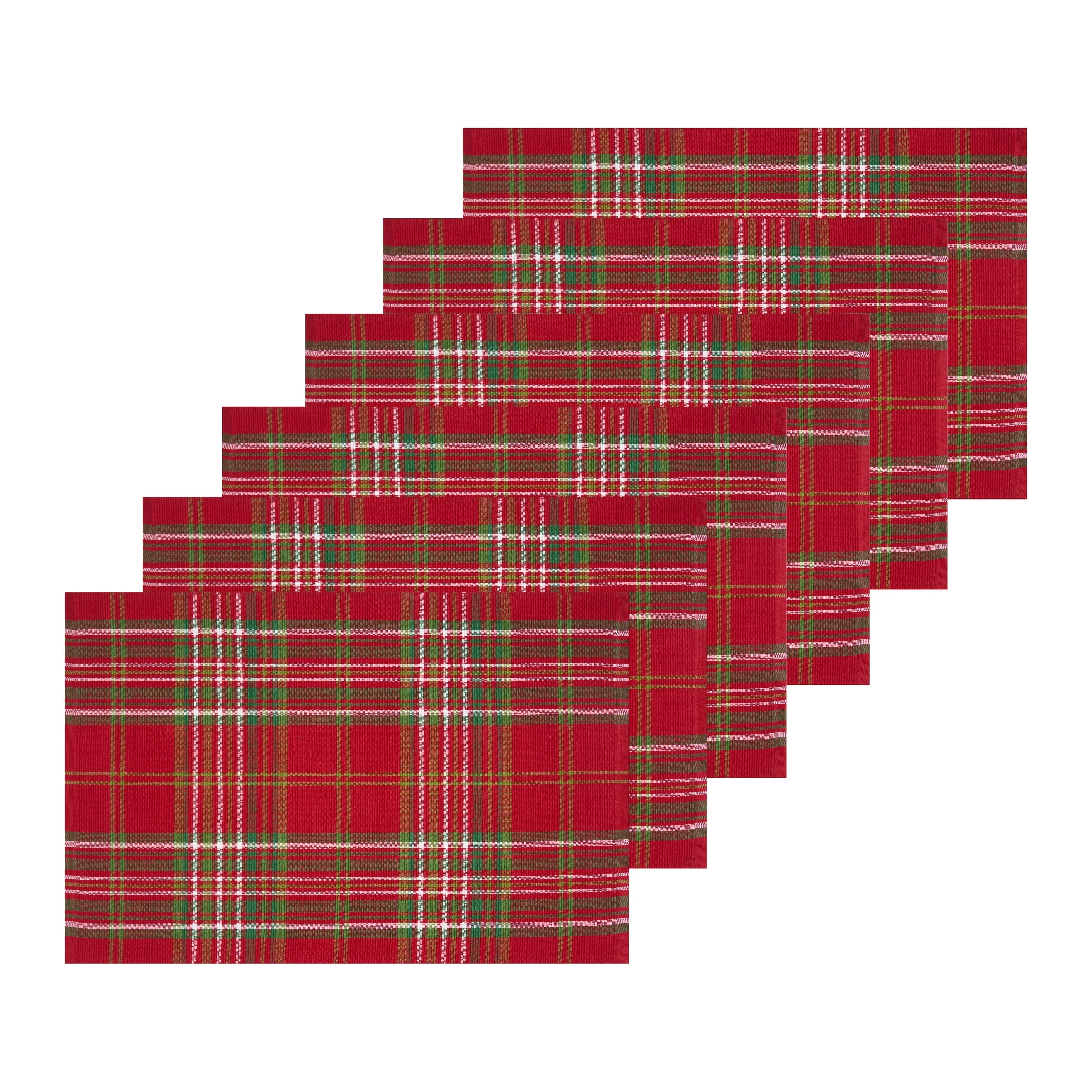 Morris Plaid Red and Green Woven Placemat Set of 6 - Set of 6