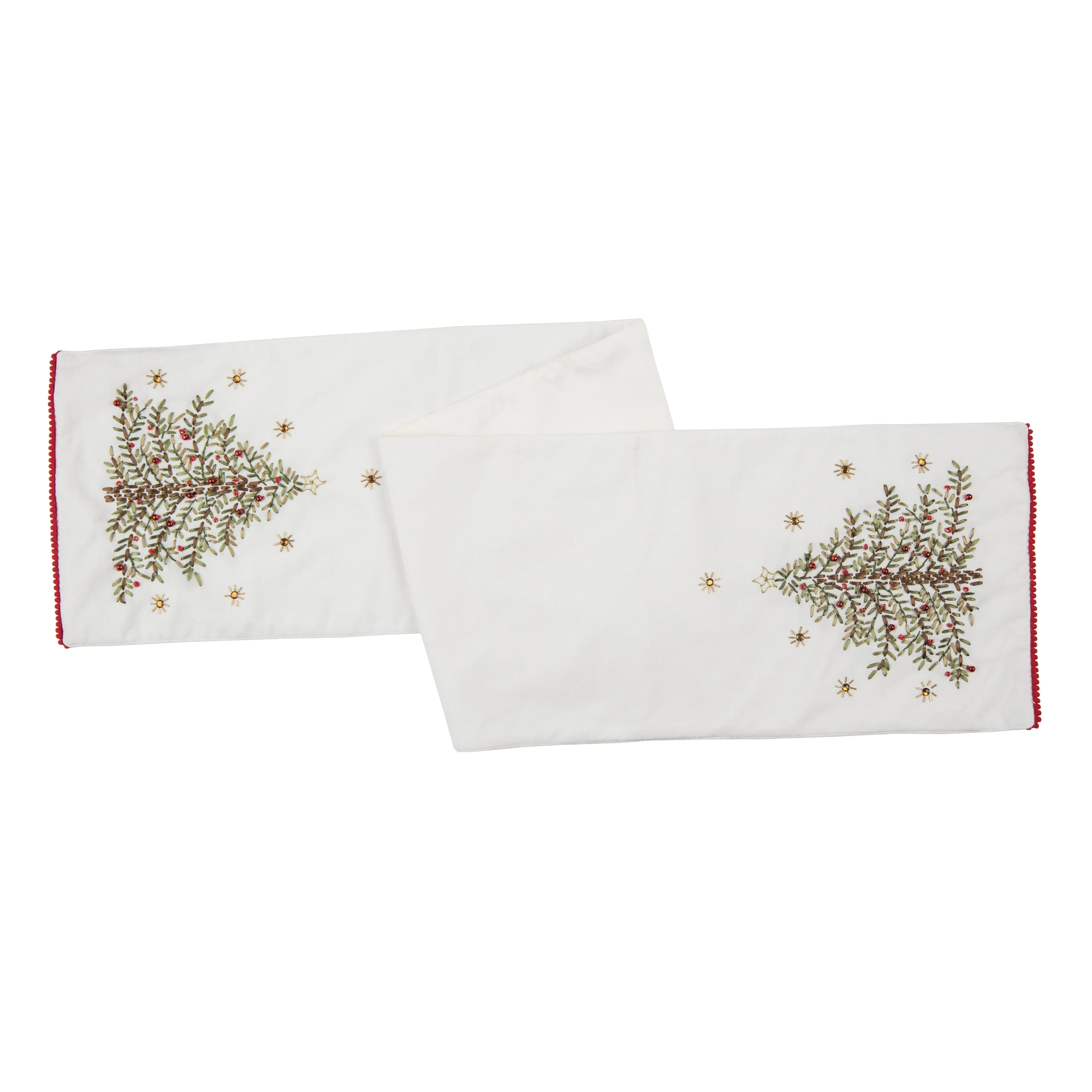 72" x 14" Christmas Holiday Embroidered Christmas Tree on White Background Cotton Table Runner