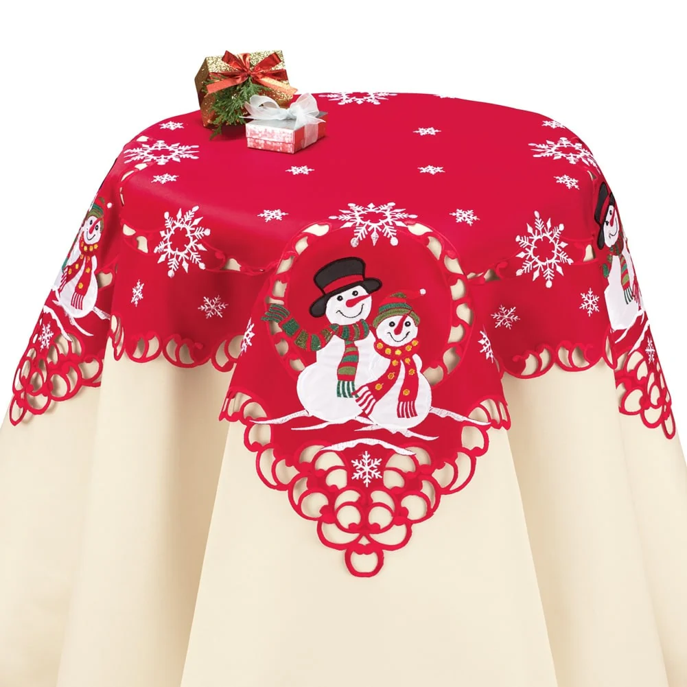 Embroidered Festive Mr. & Mrs. Snowman Table Linens
