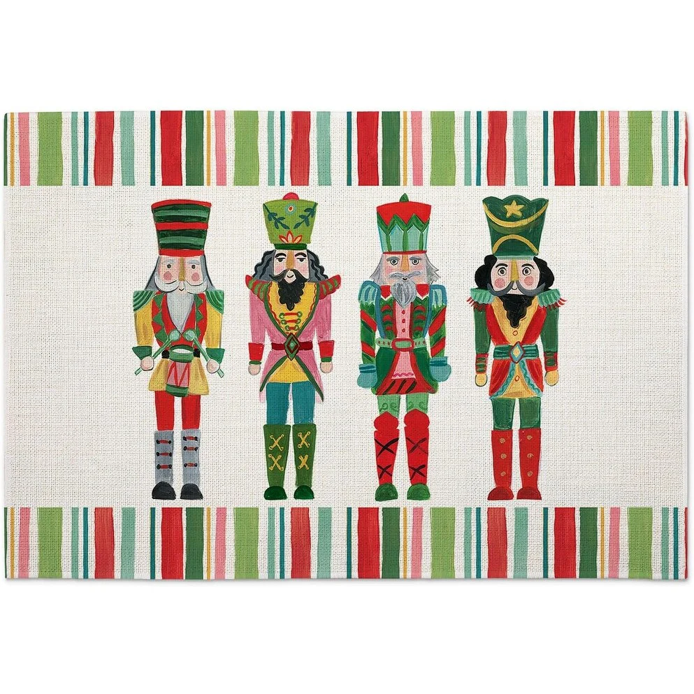 Holiday Nutcracker 4-Pack Poly-Cotton Blend Placemats Manufactured in The USA Machine Washable Dryer Safe