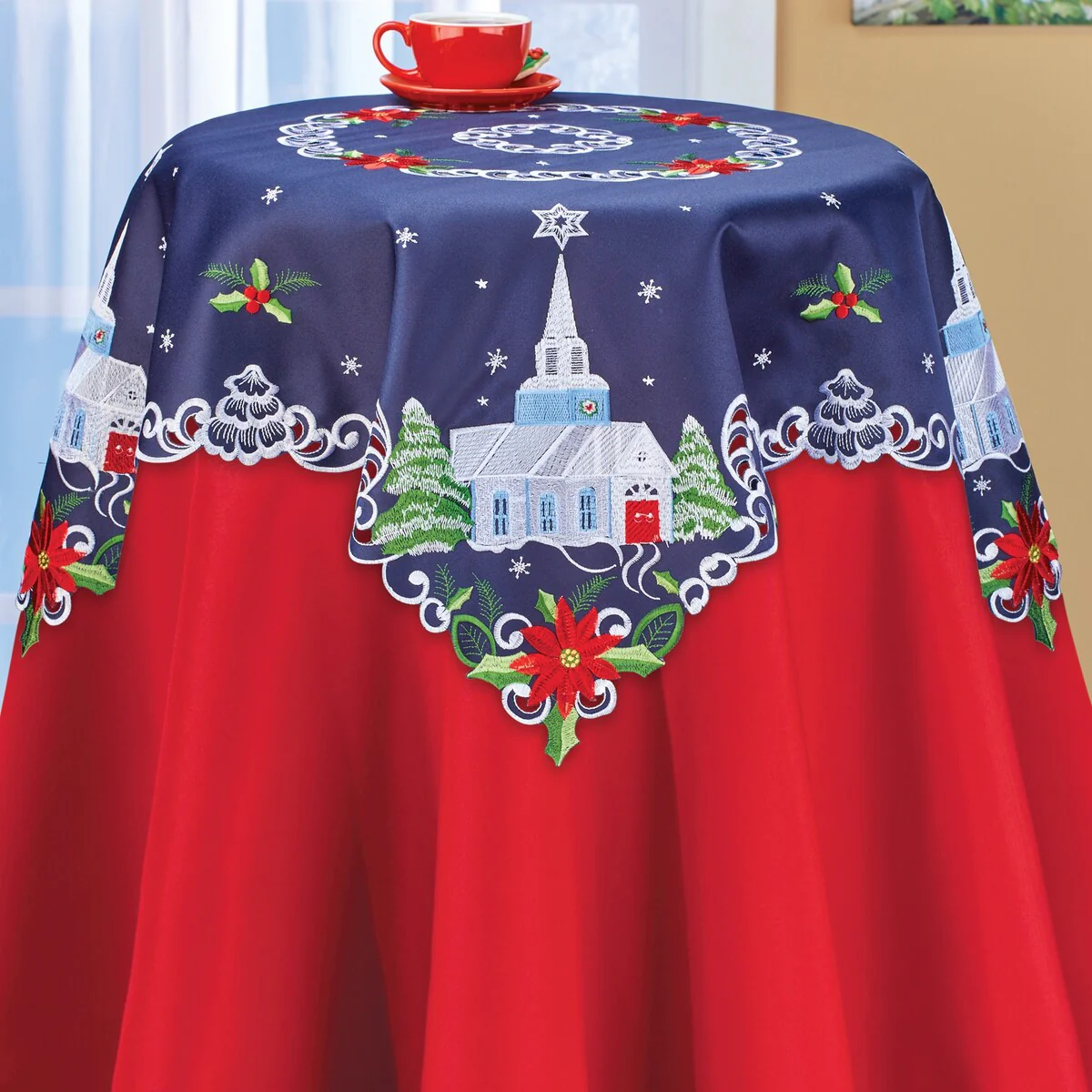 Christmas Poinsettias Table Runner- 14" x 90"