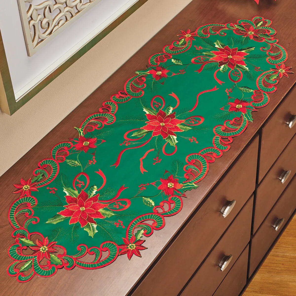 Christmas Poinsettias Table Runner- 14" x 72"