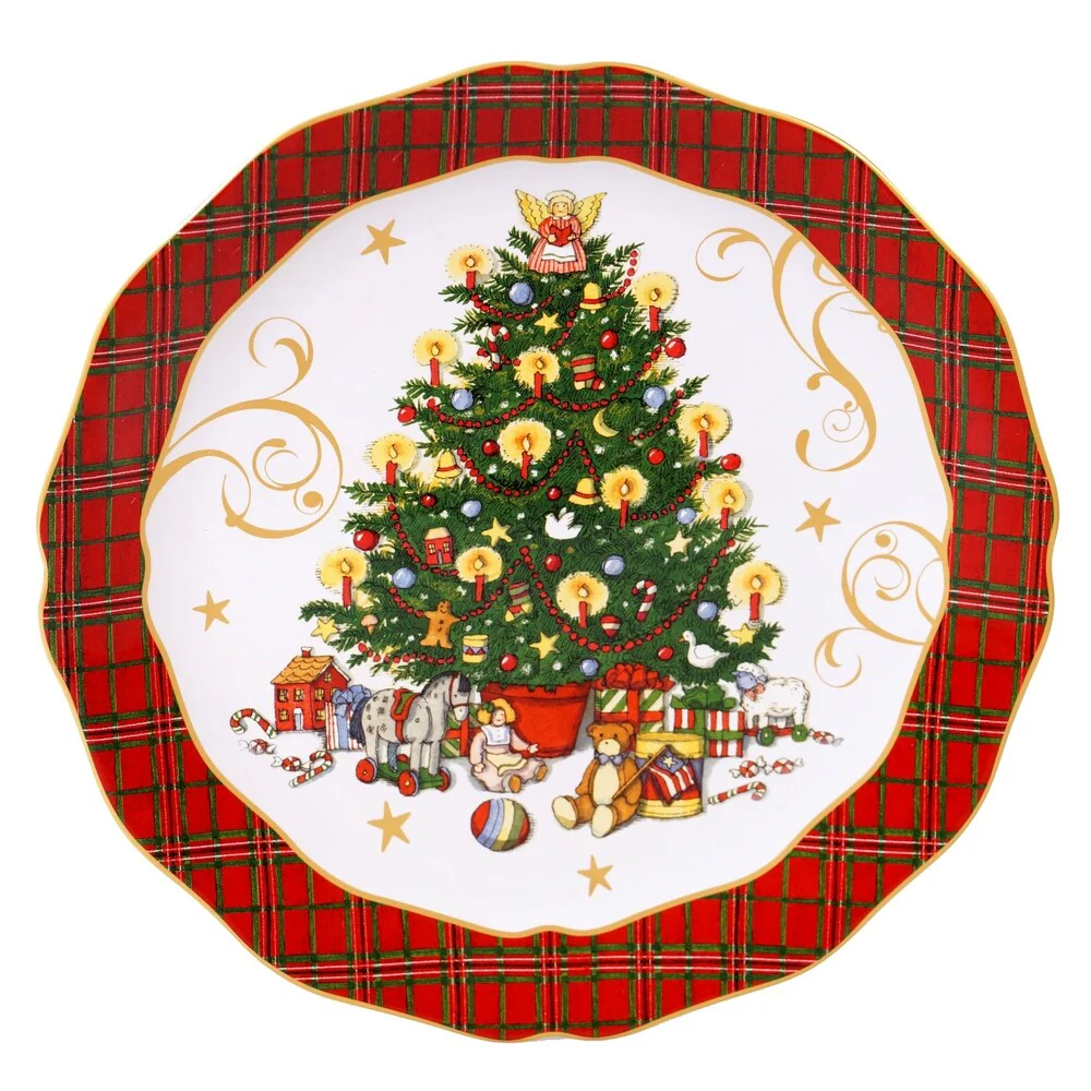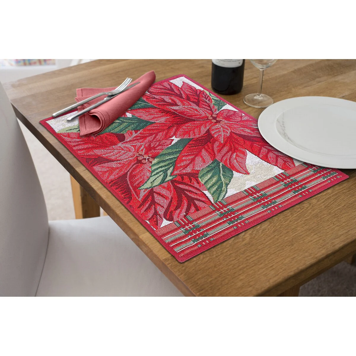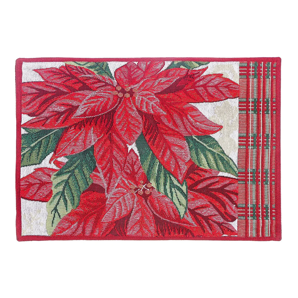 Christmas Tapestry Placemat Poinsettia Plaid 13X18 - Set of 12