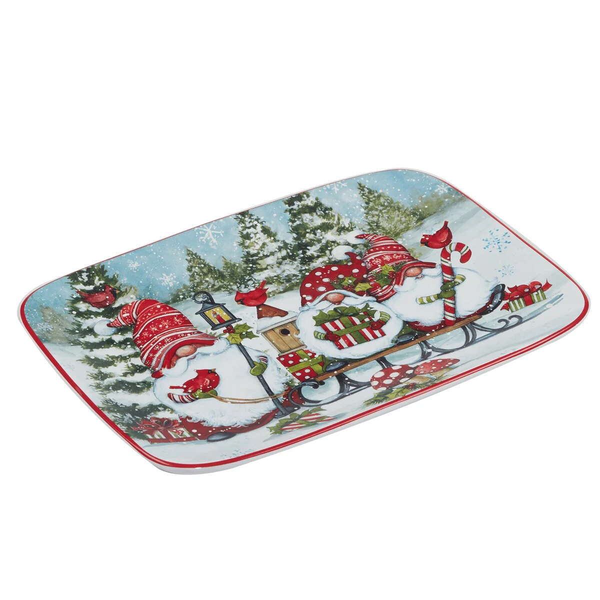 Certified International Christmas Gnomes Rectangular Platter 14" x 10" - 14" x 10"
