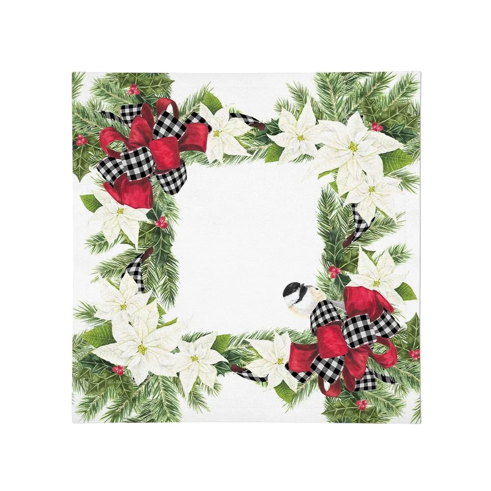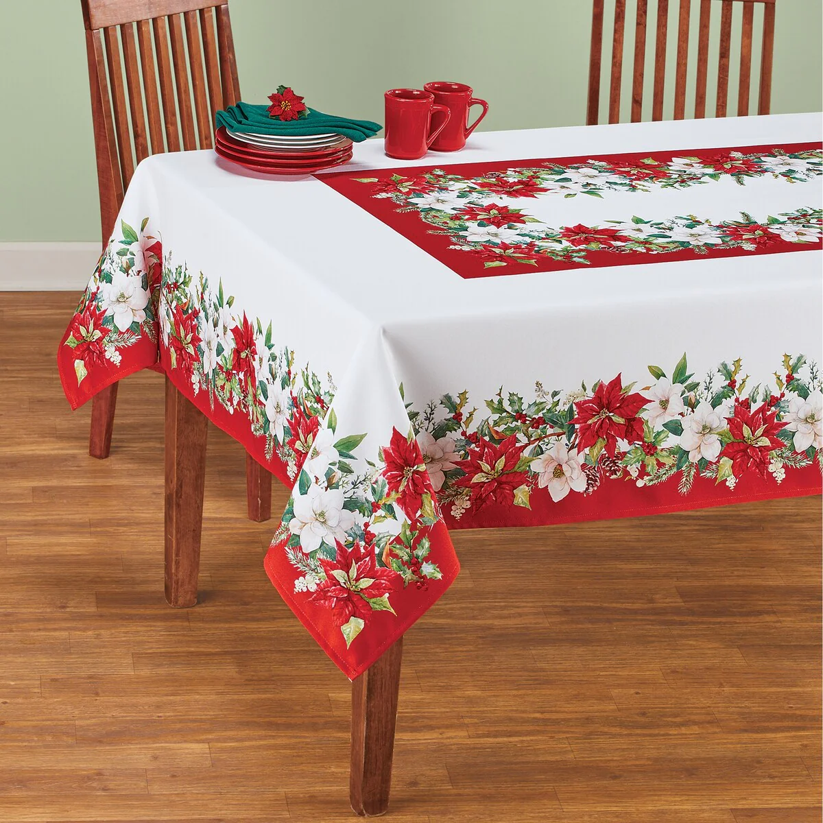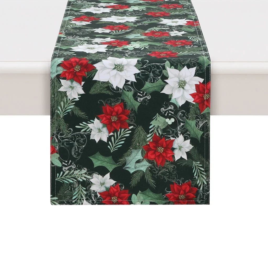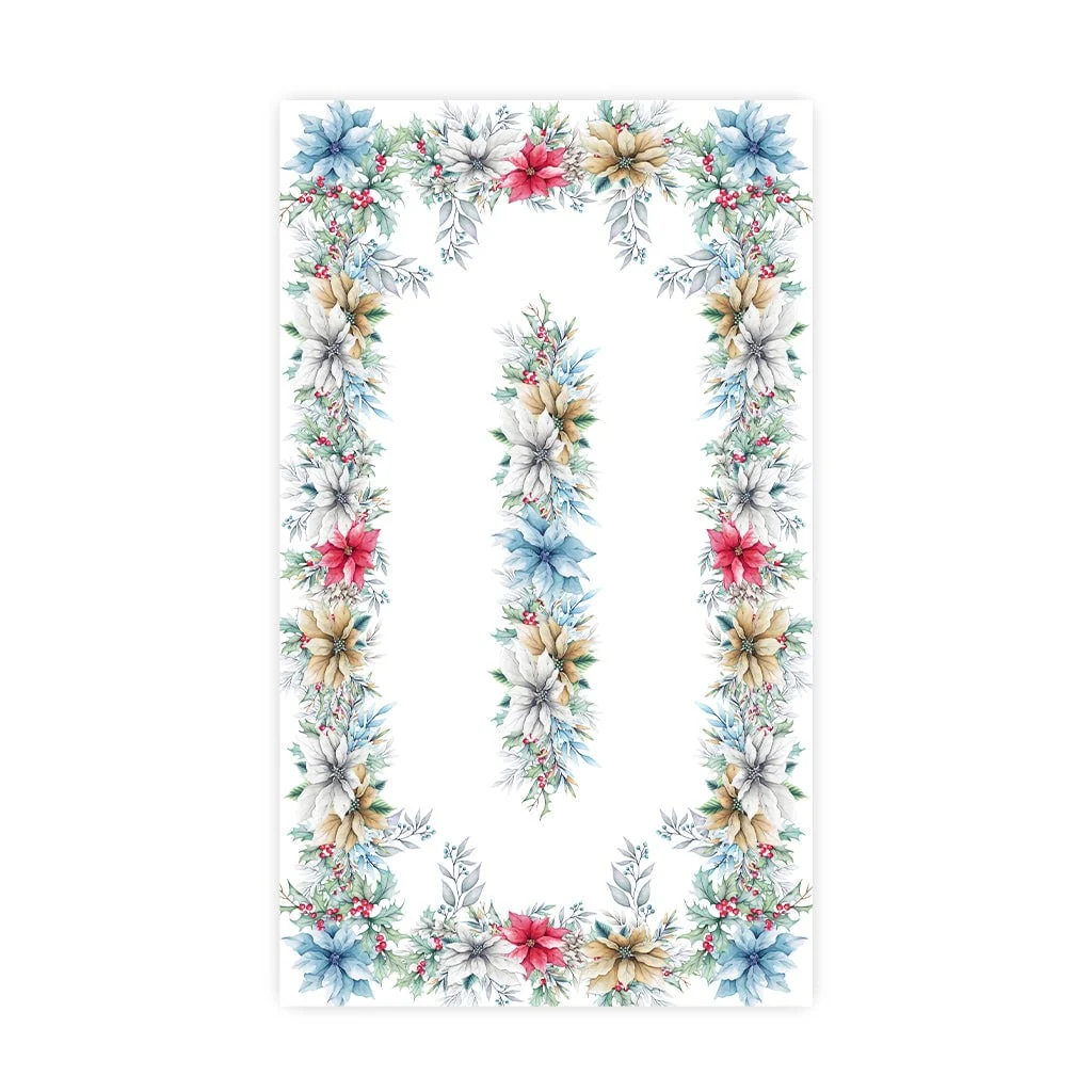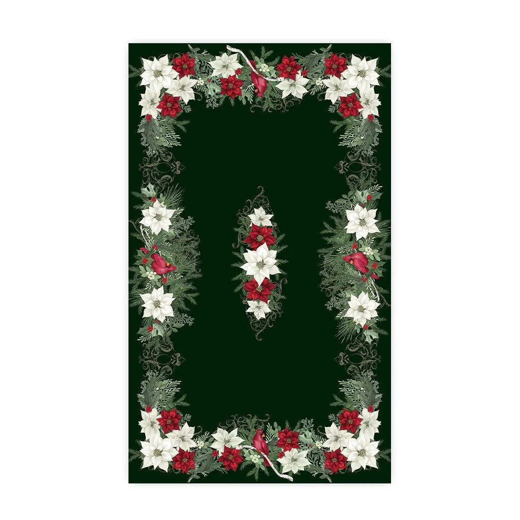 Poinsettia & Holly Holiday Floral Tablecloth