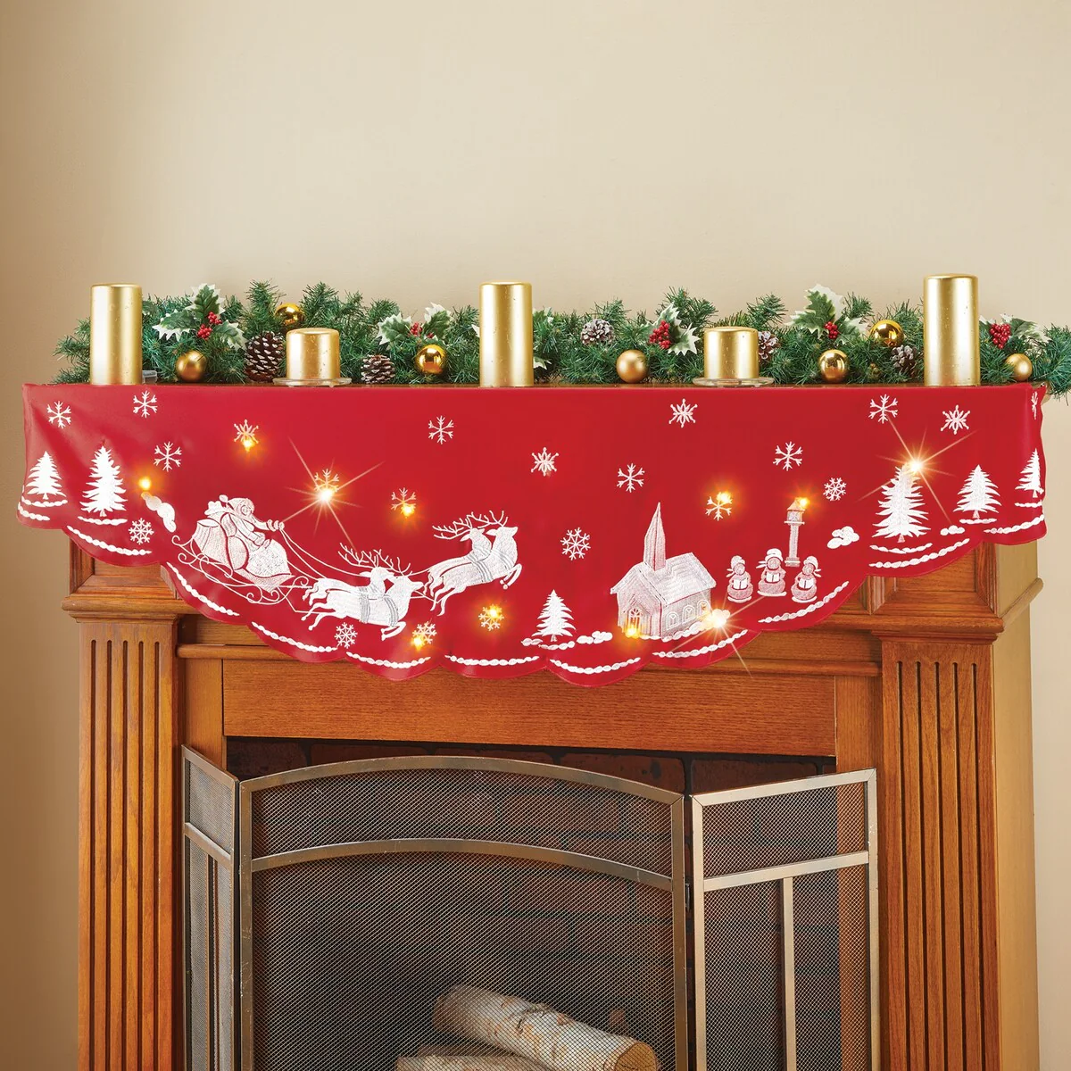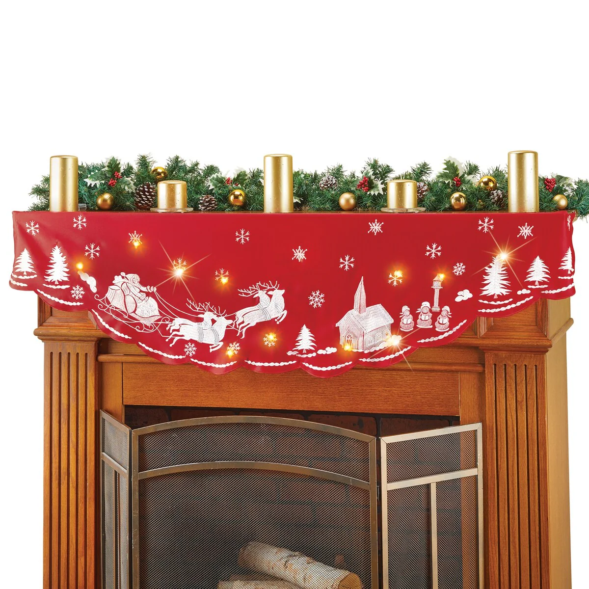 LED Lighted Christmas Town Scalloped Mantel Scarf - 15.5 x 68.5