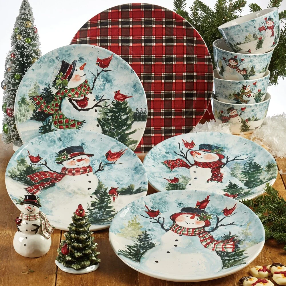 Snowman Delight Dinner Plater Set Service for 4