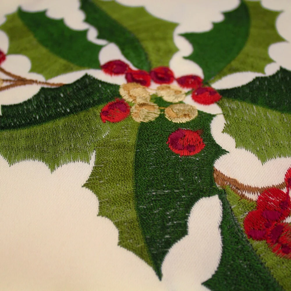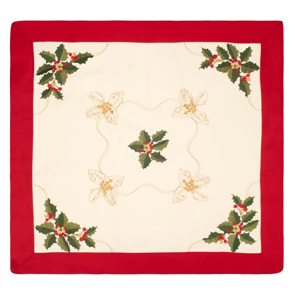 Holiday Holly Berries Embroidered Square 36 x 36 in. Table Topper