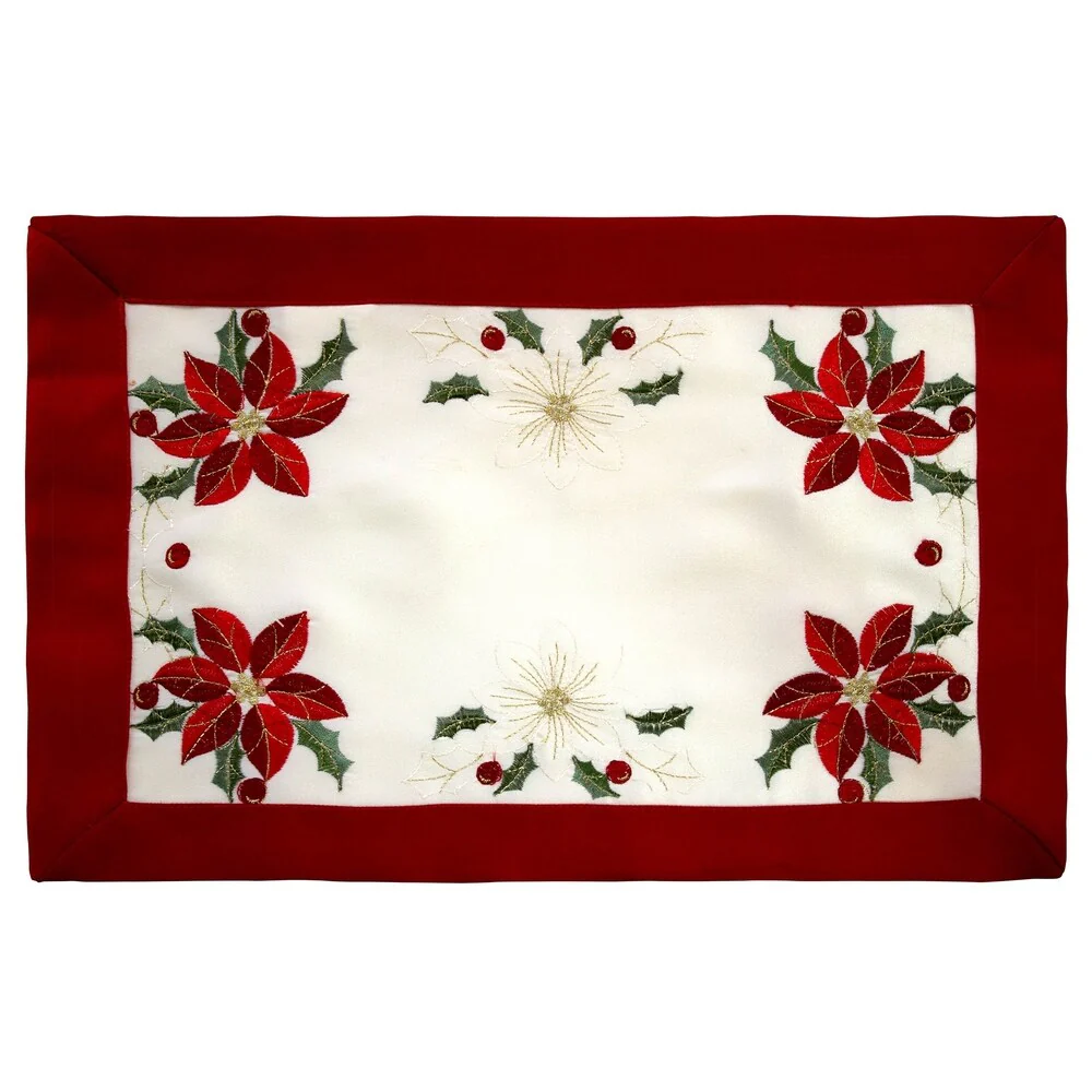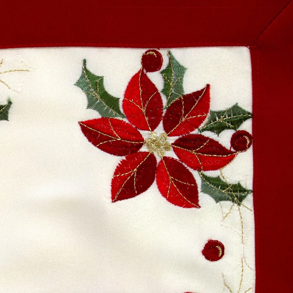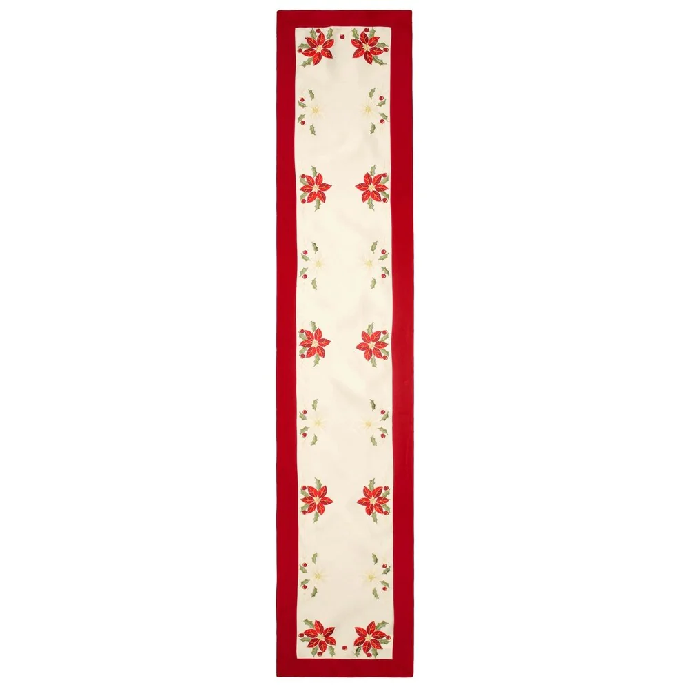 Holiday Poinsettia Embroidered 14 x 72 in. Table Runner