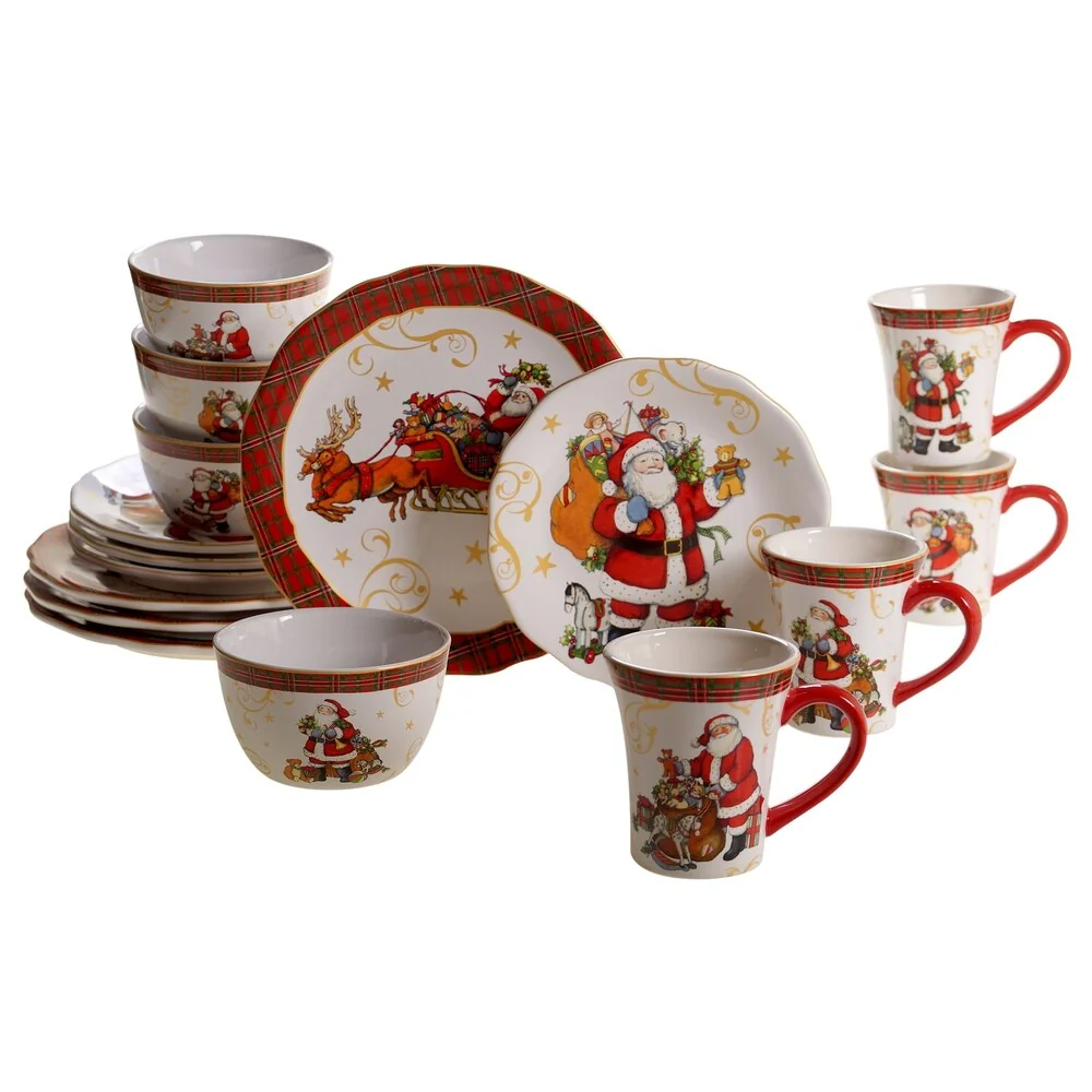 Certified International Vintage Santa 16-piece Dinnerware Set