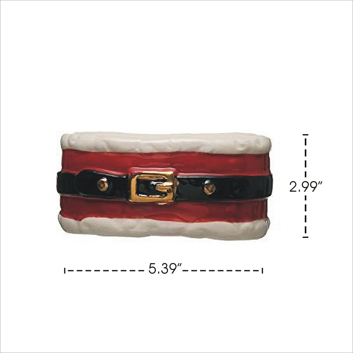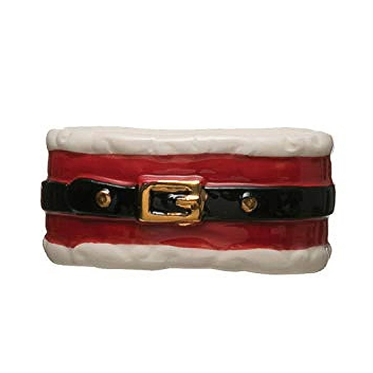 Festive Red Black Santa Belt Stoneware Decorative Napkin Ring Holder - 2.5" x 2.5"