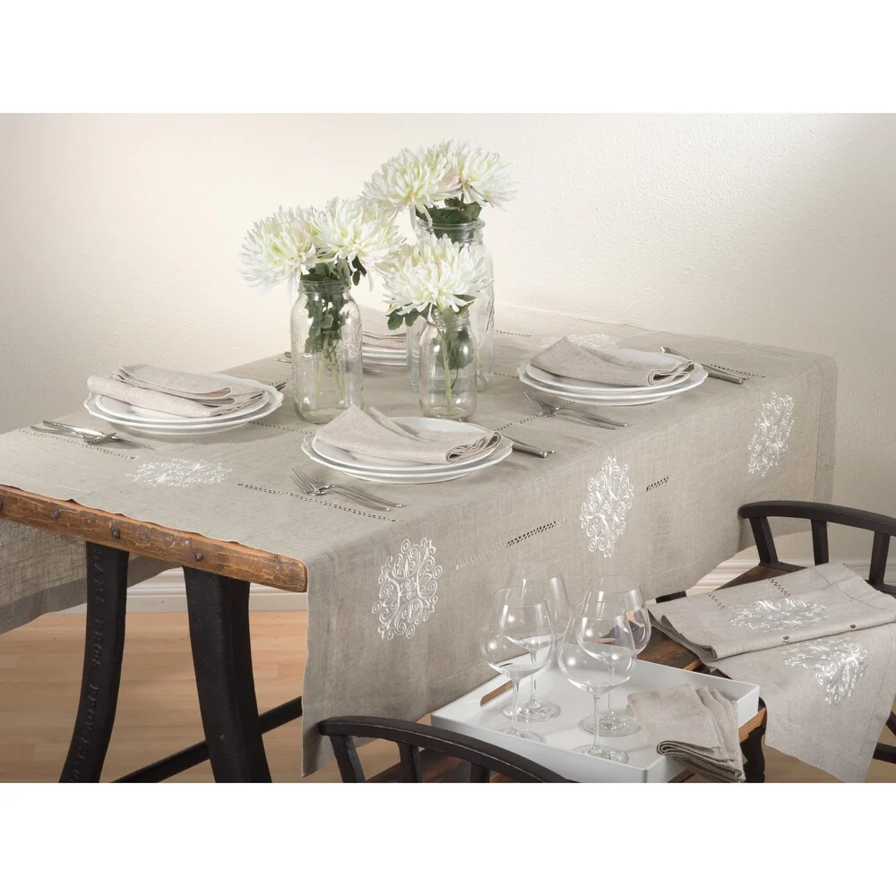 Medallion Design Embroidered Linen Blend Table Topper or Table Runner