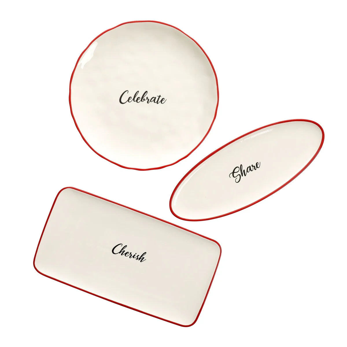 Mainstays Holiday Hollyplace 3 Piece Stoneware Serving Platter Set