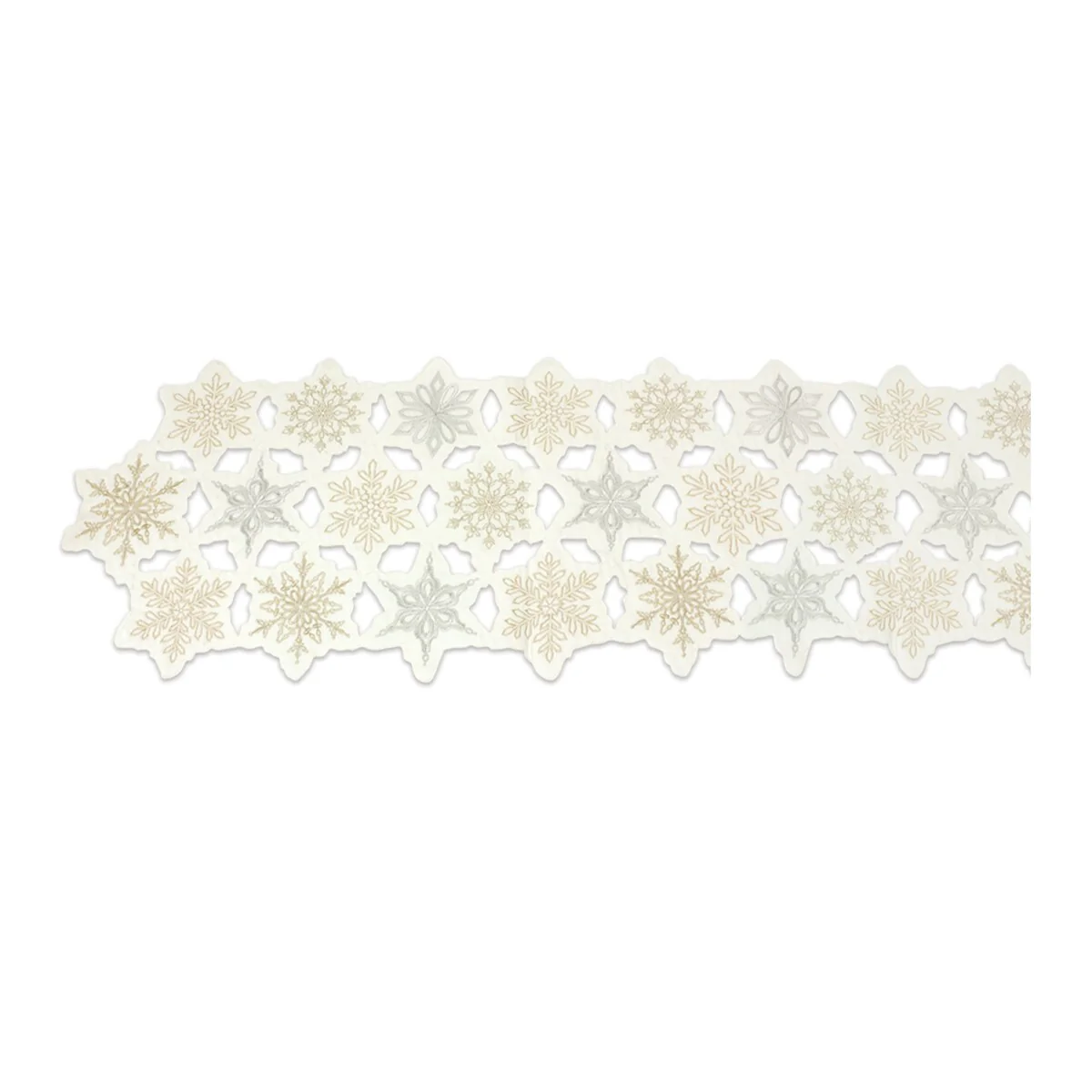 Embroidered Snowflake Table Runner 68"L