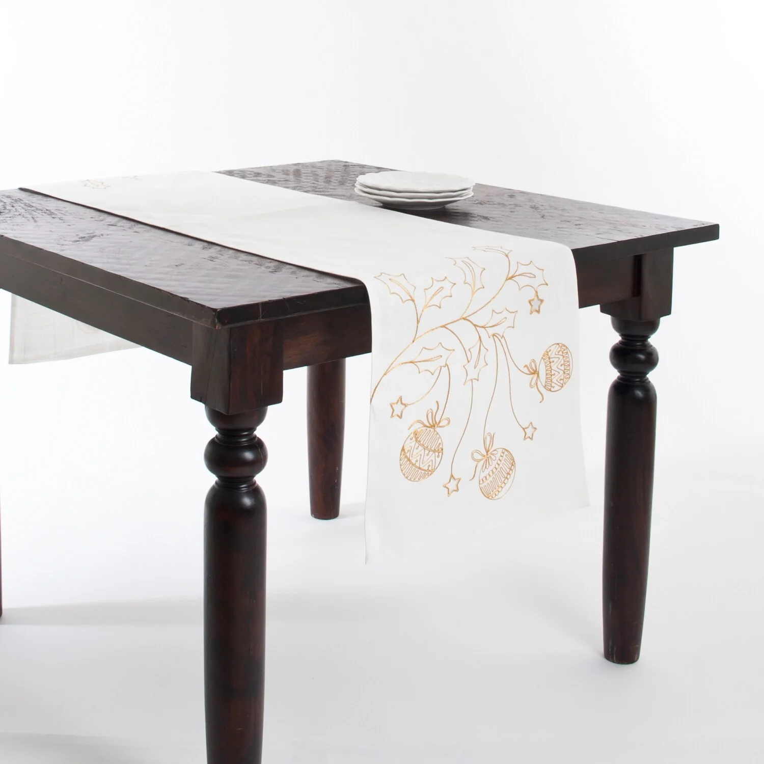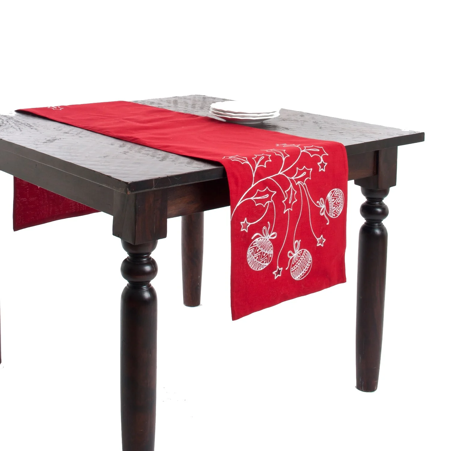 Long Table Runner With Poinsettia Embroidery