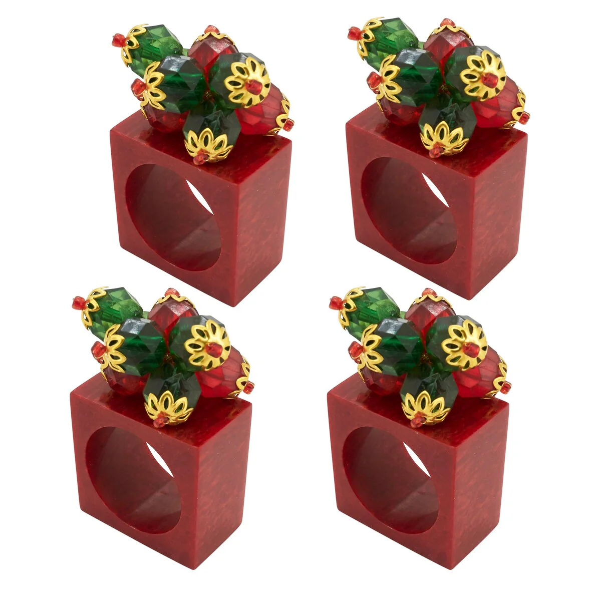 Holly Jolly Square Beaded Napkin Ring (Set of 4) - Red