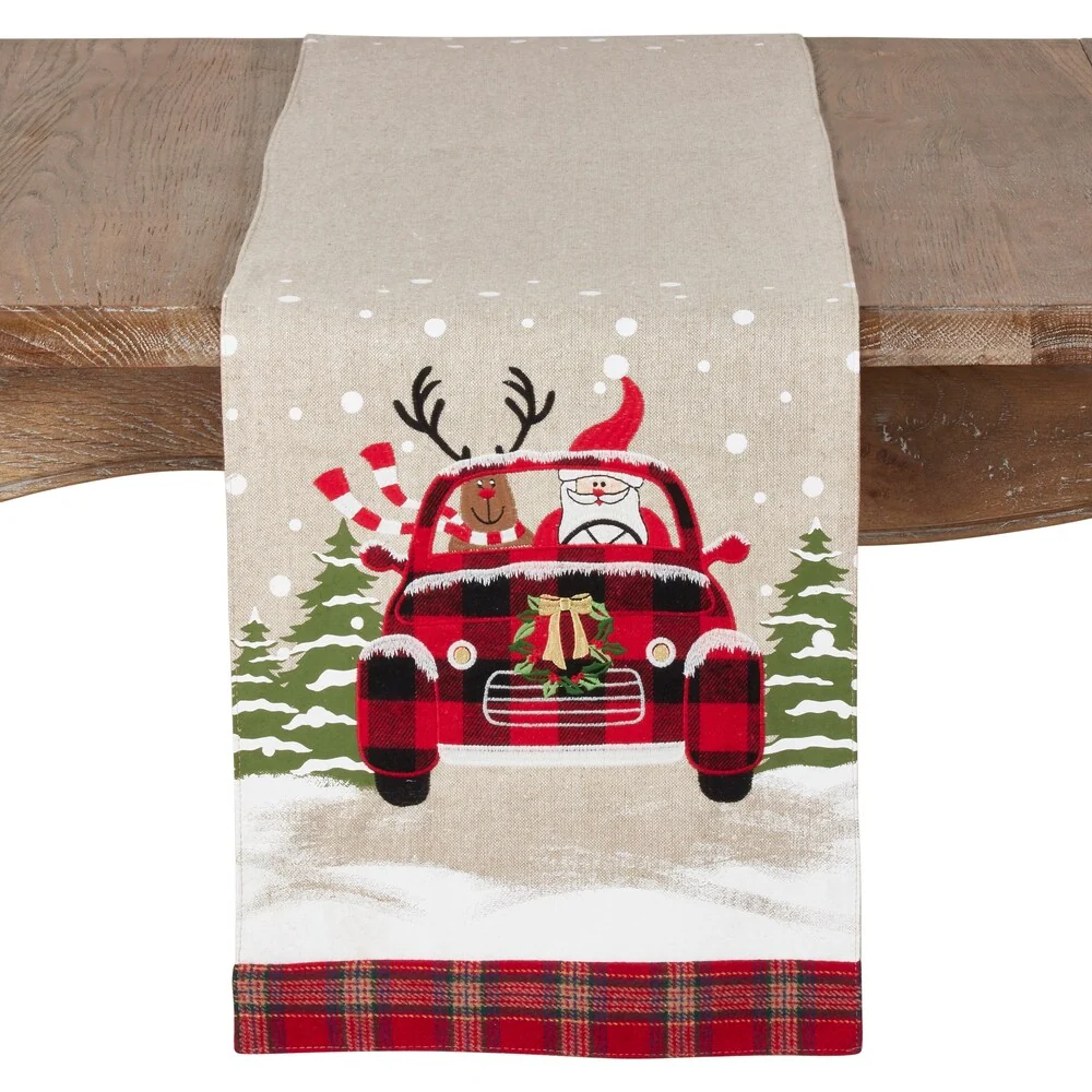 Christmas Runner With Santa And Reindeer Car Design