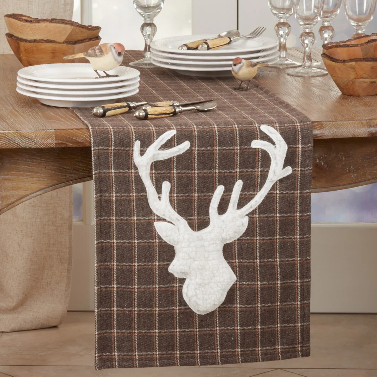 Plaid Table Runner With Reindeer Design