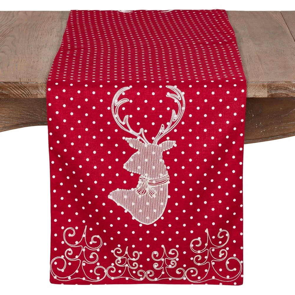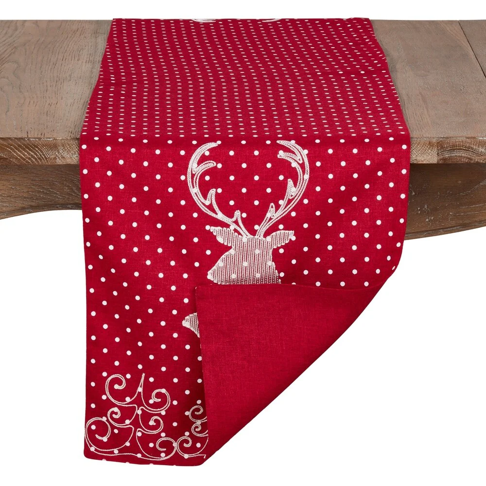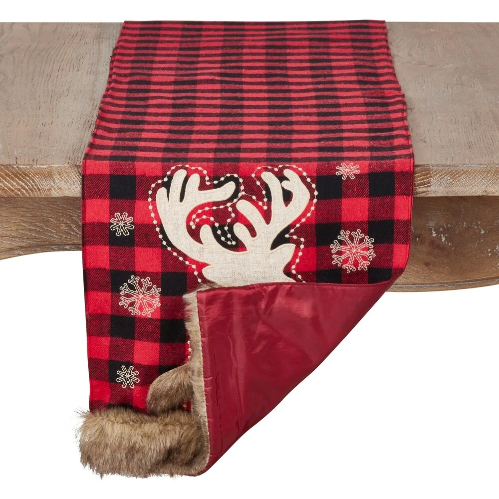 Holiday Runner With Plaid And Faux Fur Reindeer Design