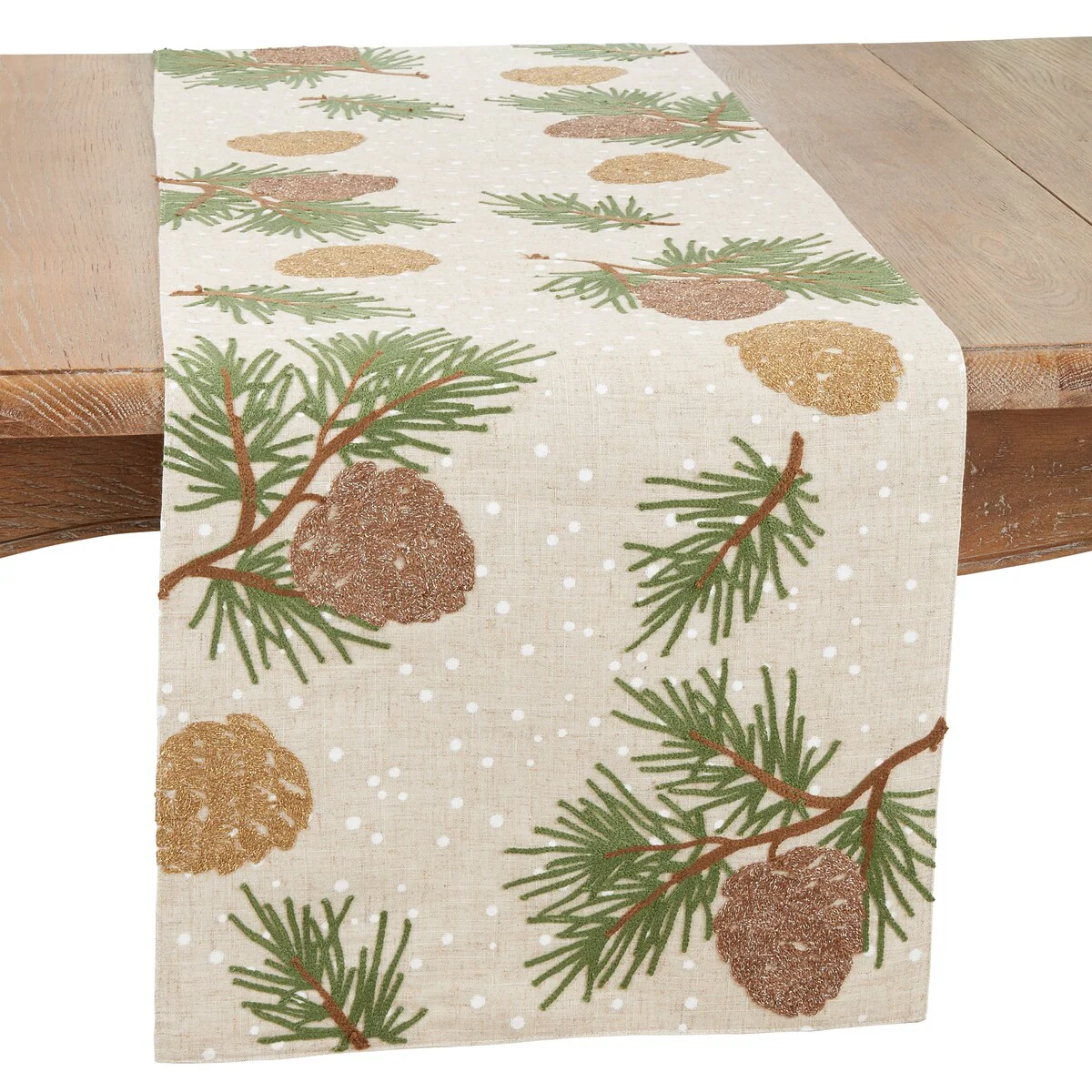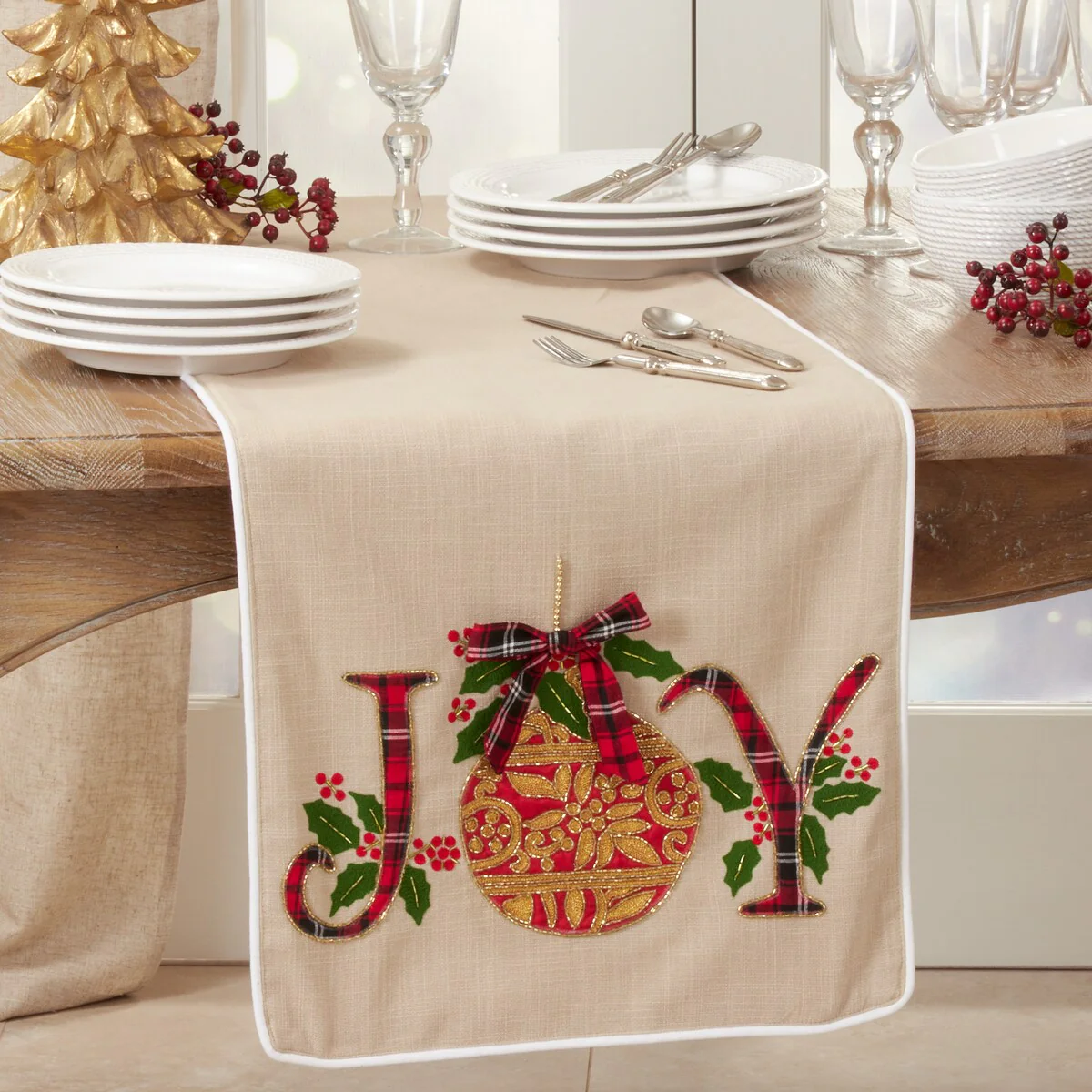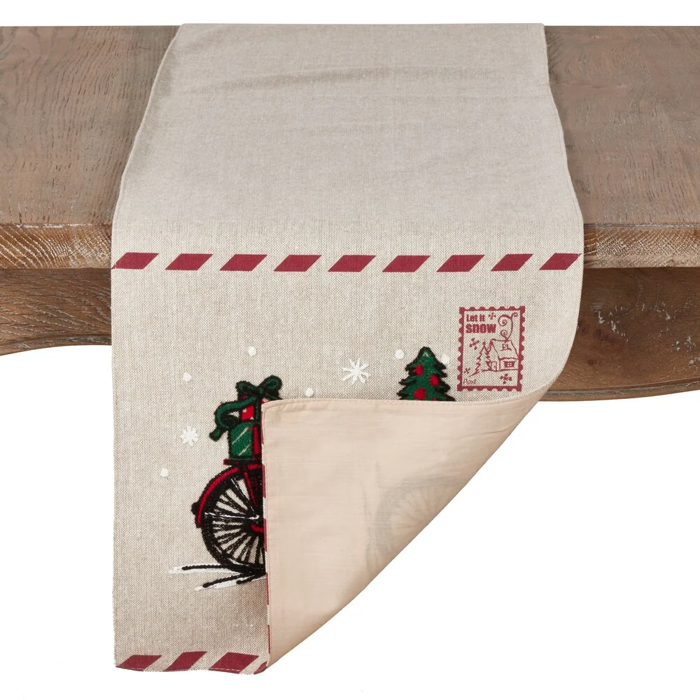 Holiday Table Runner With Bicycle And Christmas Tree Design