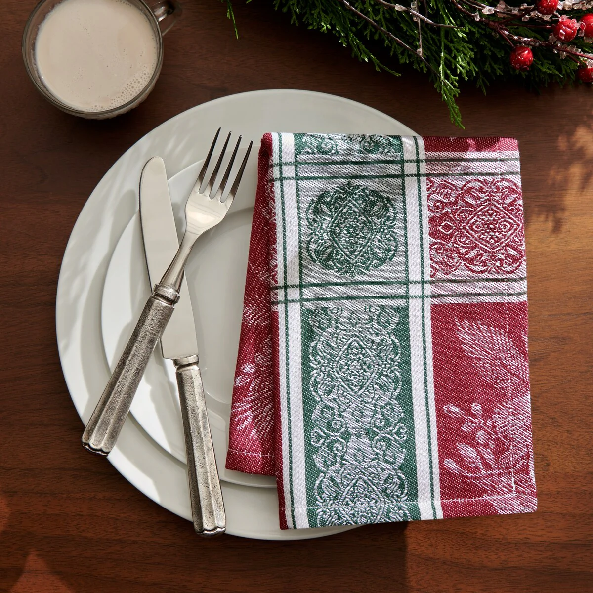 Poinsettia Plaid Jacquard Napkins, Set of 8 - 17x17