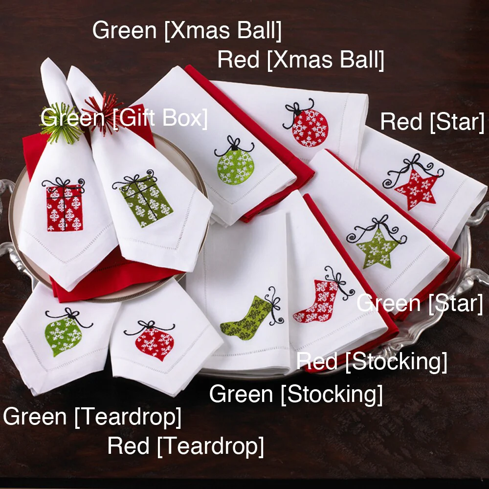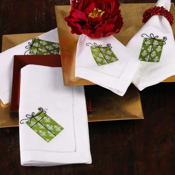 Embroidered Table Napkins With Gifts Design (Set of 4) - 20"x20"