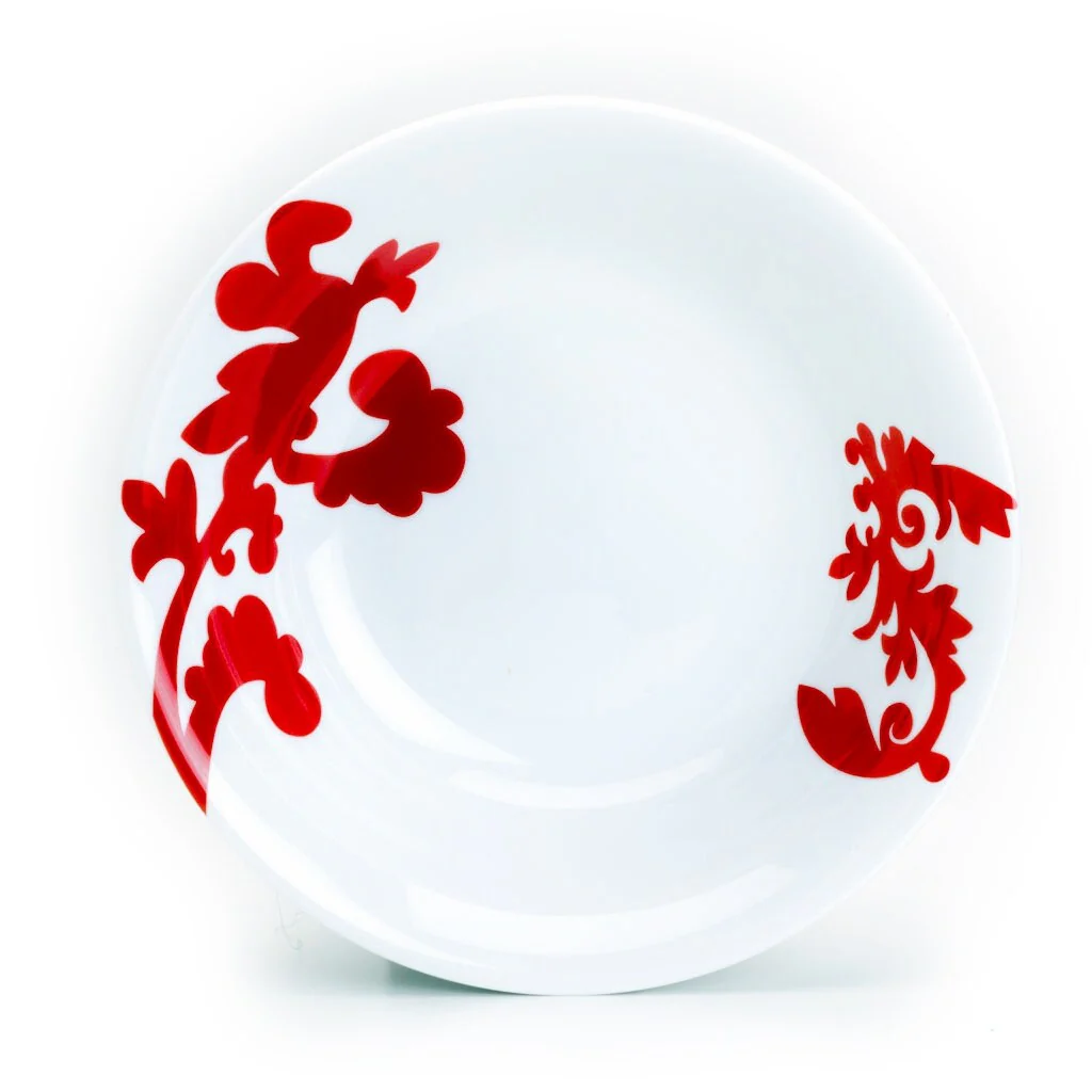 Euro Ceramica Calarama Red and White Porcelain 10 inch Serving Bowl