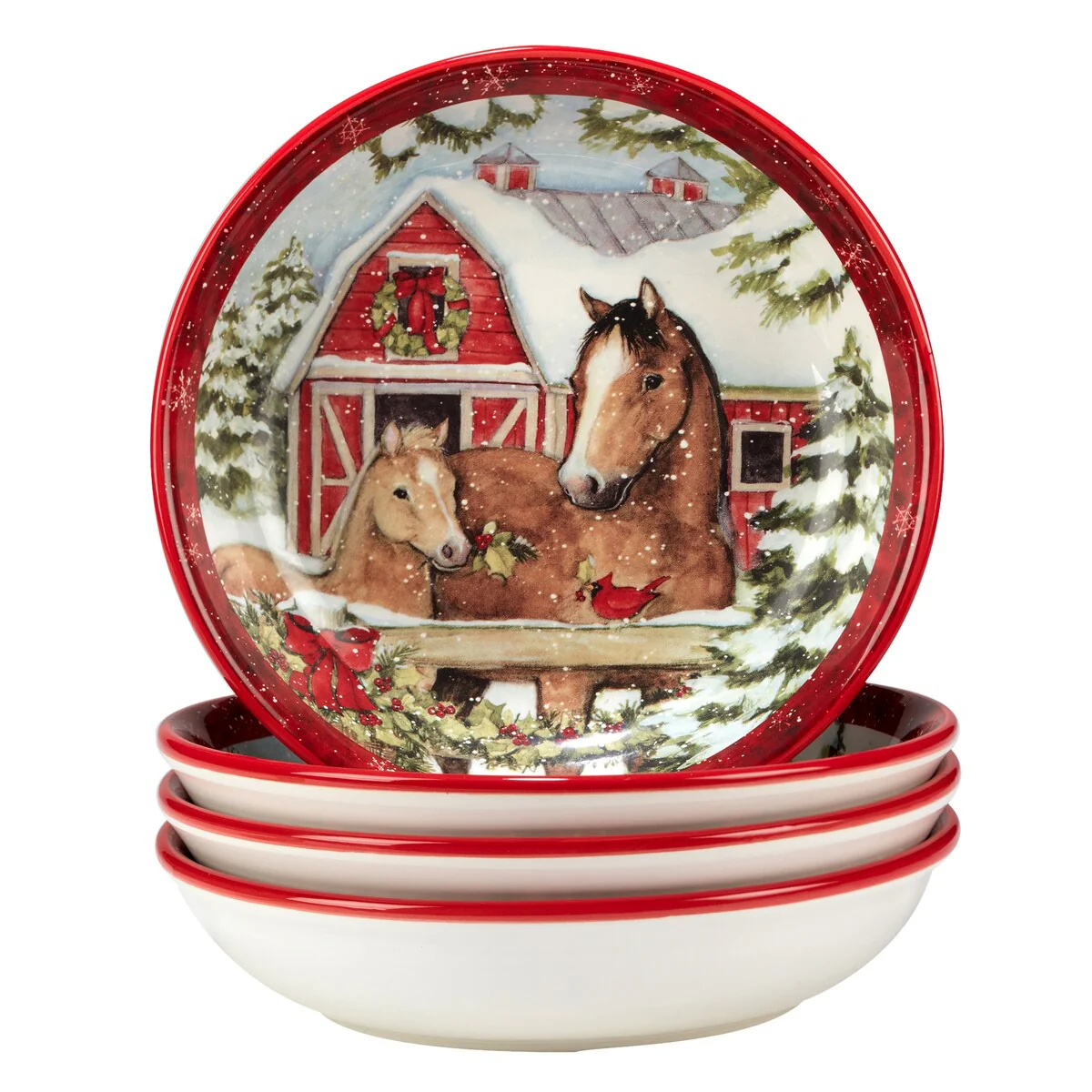 Certified International Homestead Christmas 9" Soup/Cereal Bowls, Set of 4