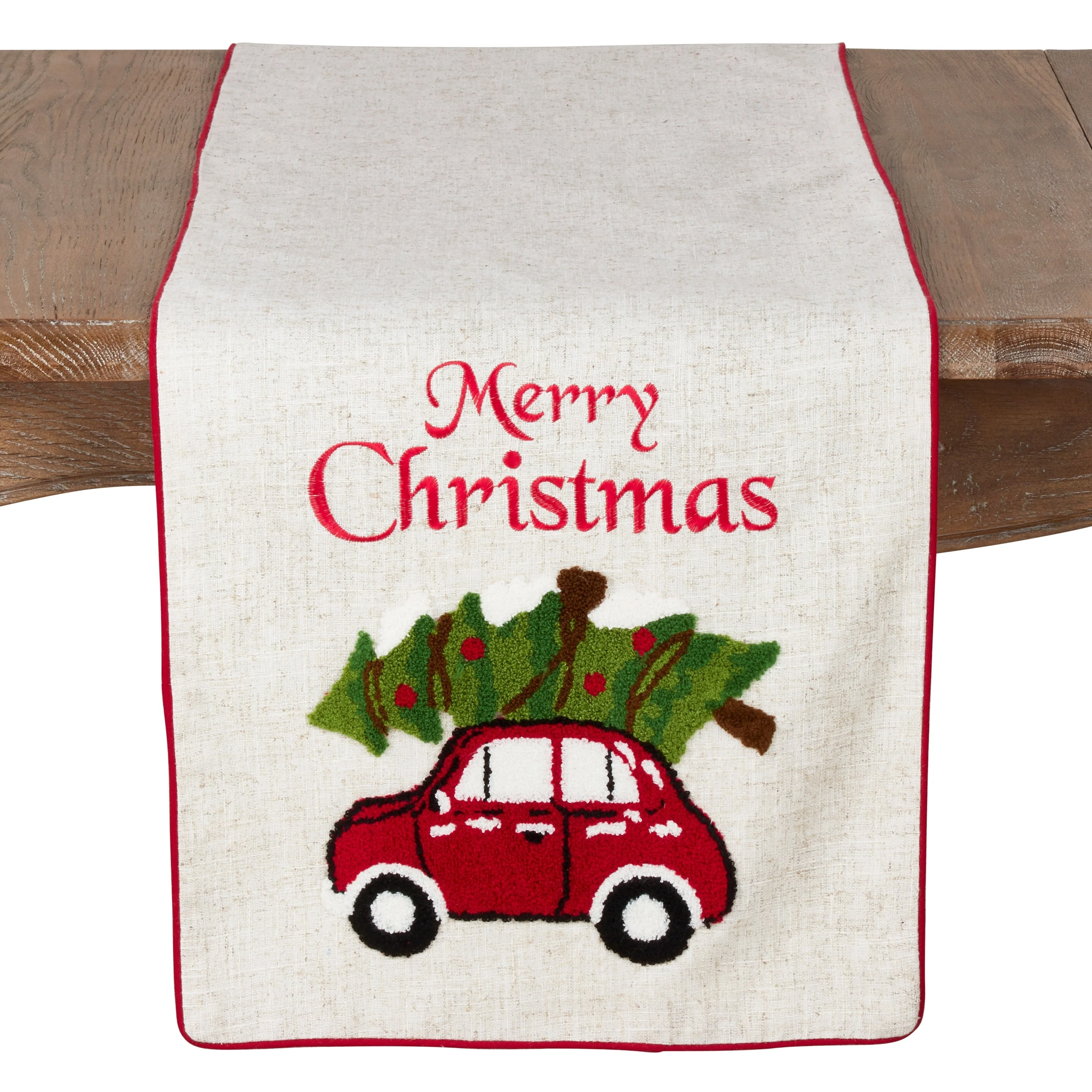 Poly Blend Christmas Runner With Red Car And Merry Christmas Design