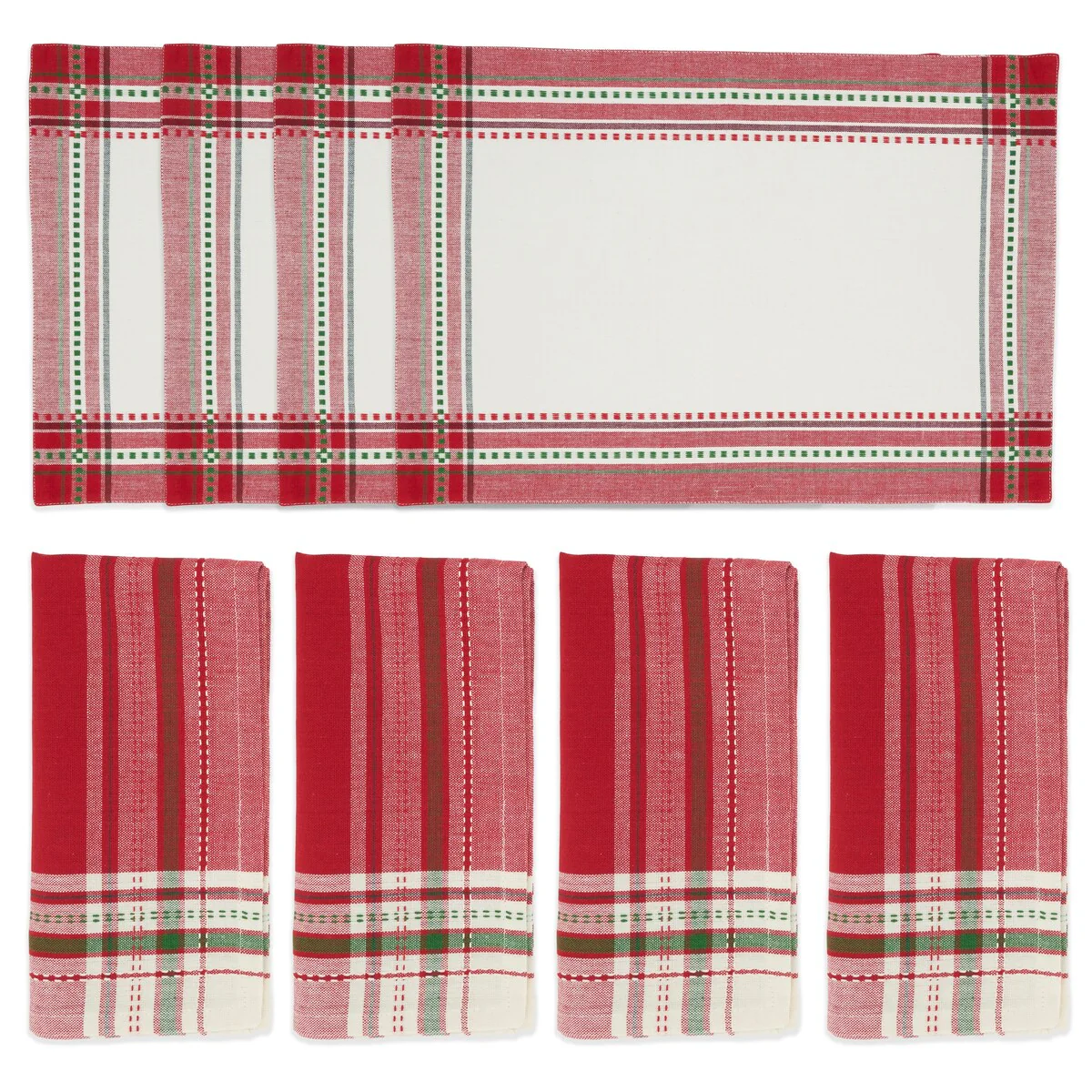Joyful Holiday Stripe Placemat and Napkin 8 pcs Set (4 Placemats, 4 Napkins)