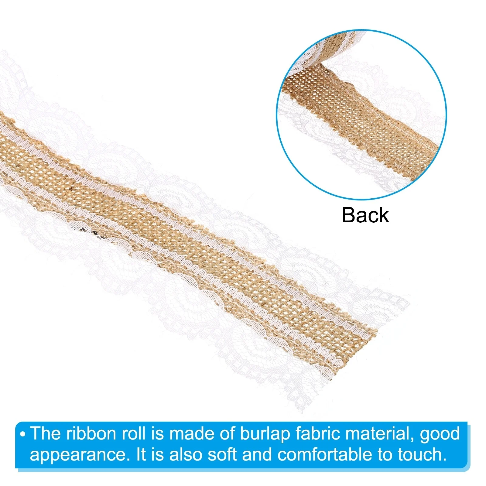 - High-quality burlap fabric and lace construction