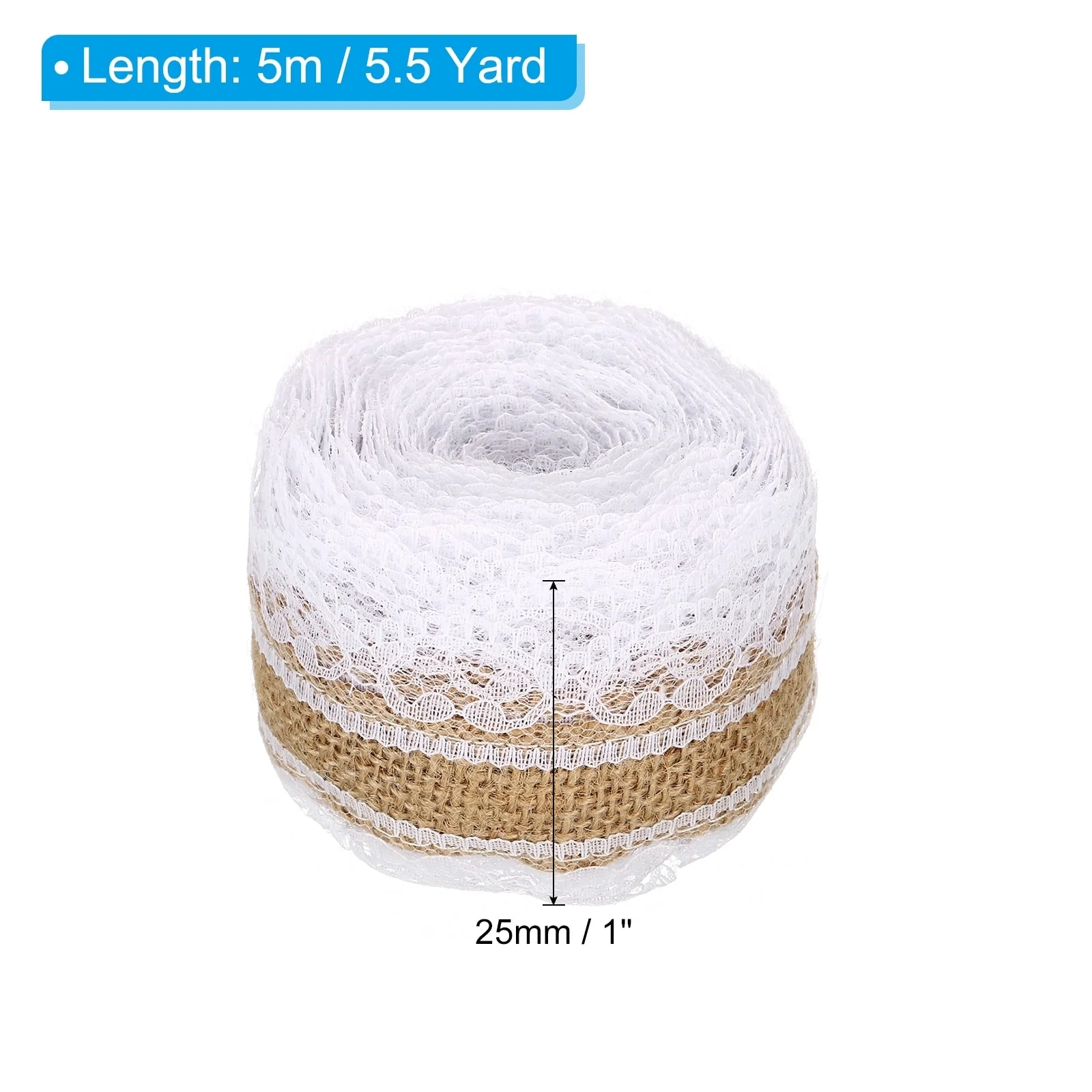 Add a rustic touch to your crafts with this 1" Wide Burlap Fabric Ribbon Jute Lace Crafts Roll. Made from high-quality burlap fabric and lace, this ribbon is perfect for adding a charming accent to your craft items. Whether you're tying a bow, wrapping gifts, or decorating wine bottles, this versatile ribbon is a must-have for any DIY enthusiast. With its soft and comfortable texture, it's easy to work with and can be cut into any length or shape you desire. Plus, it comes in a convenient roll shape for easy storage and portability. Choose from two classic colors, White and Khaki, to suit your crafting needs. Elevate your projects with this beautiful burlap ribbon today!