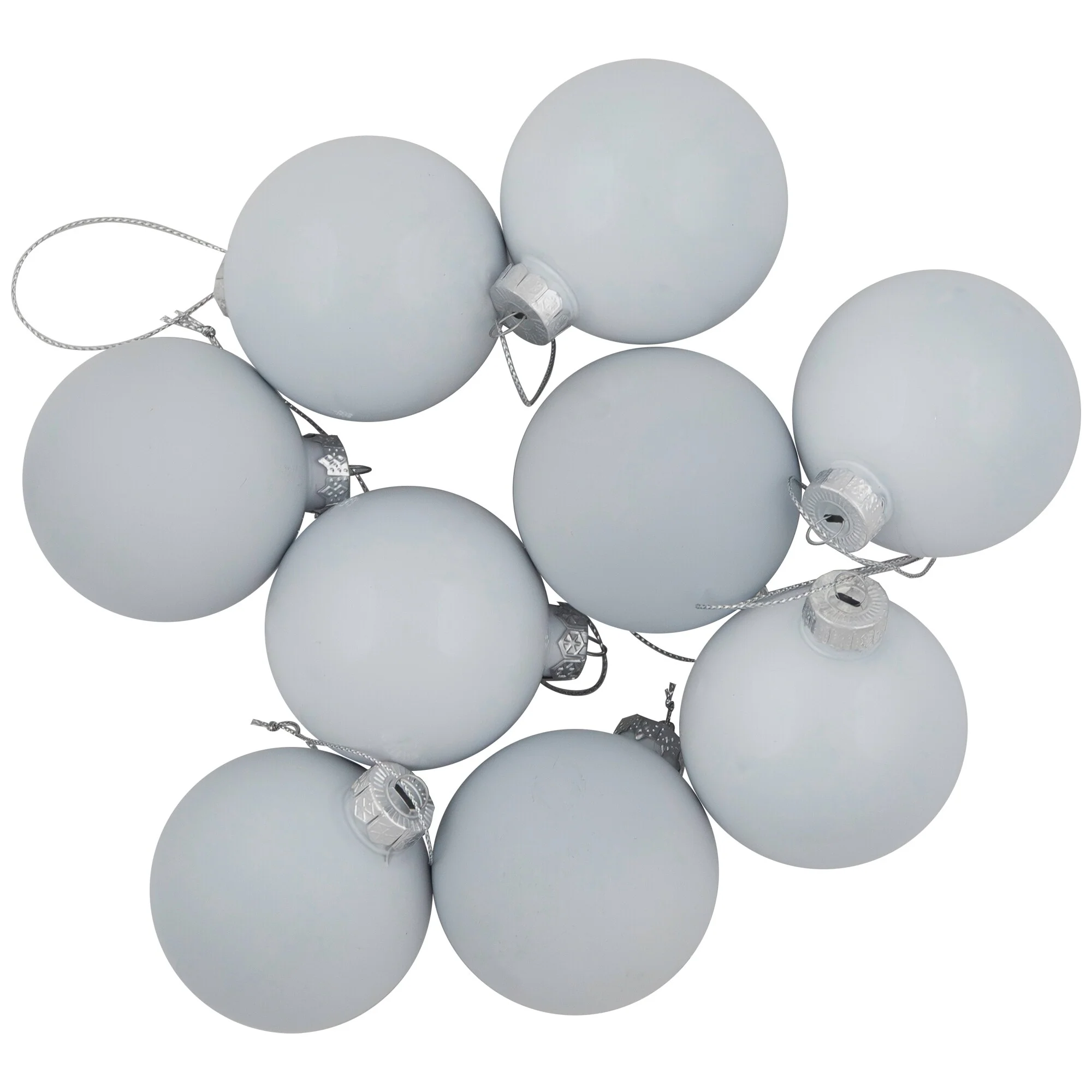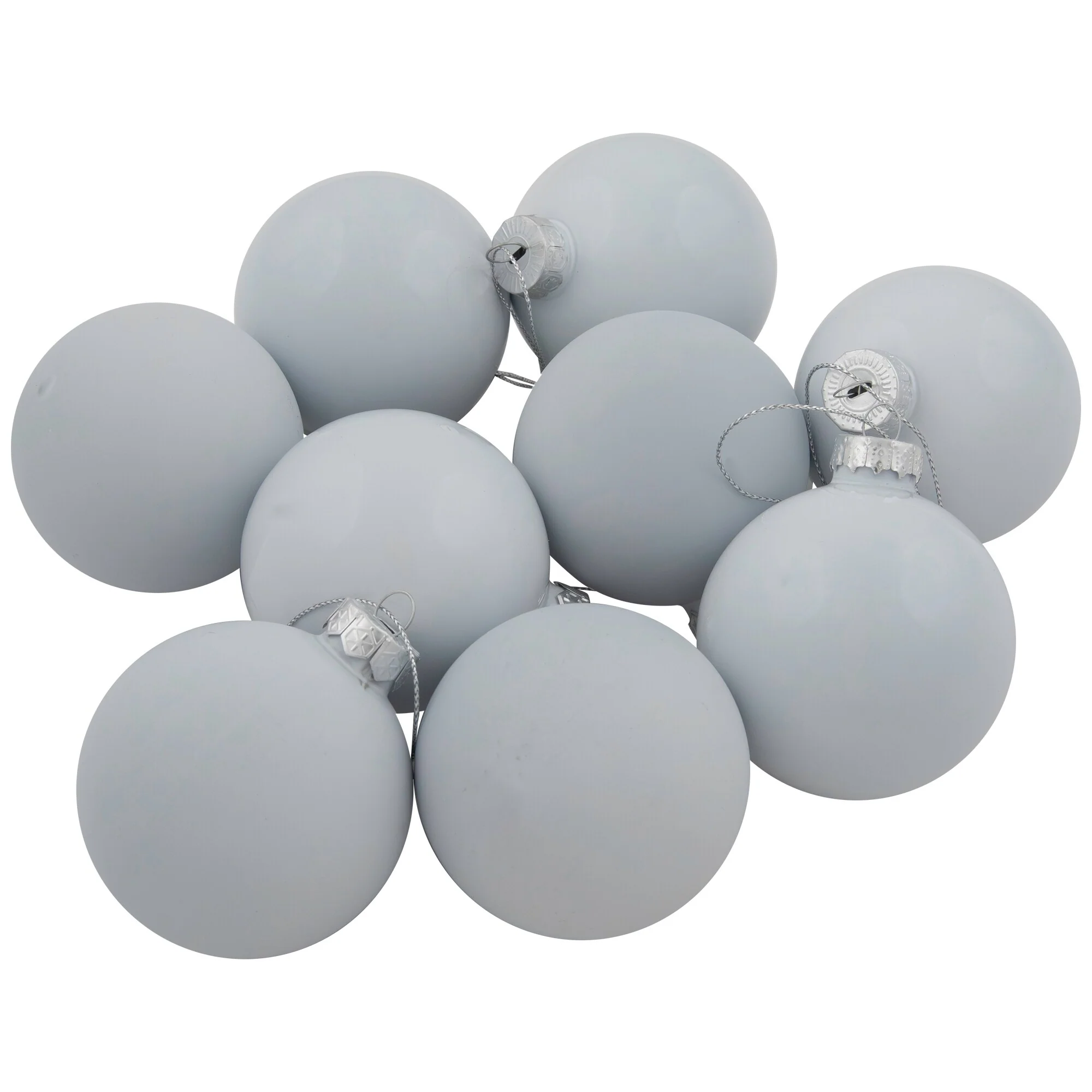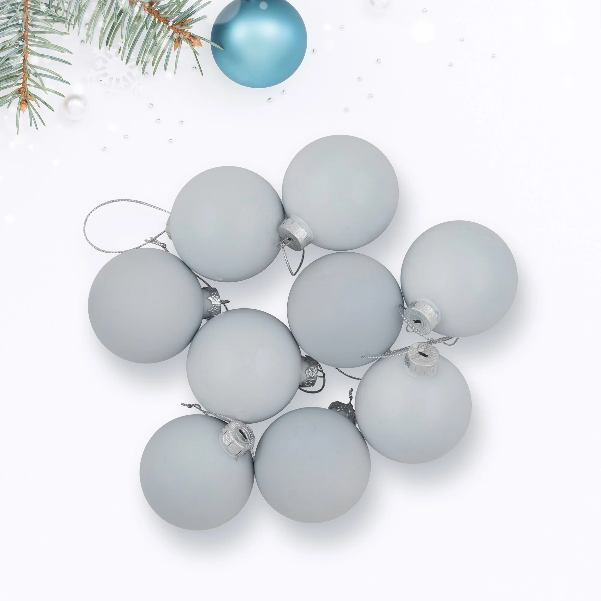 Balls are equipped with silver ornament caps (ornament hooks are not included)