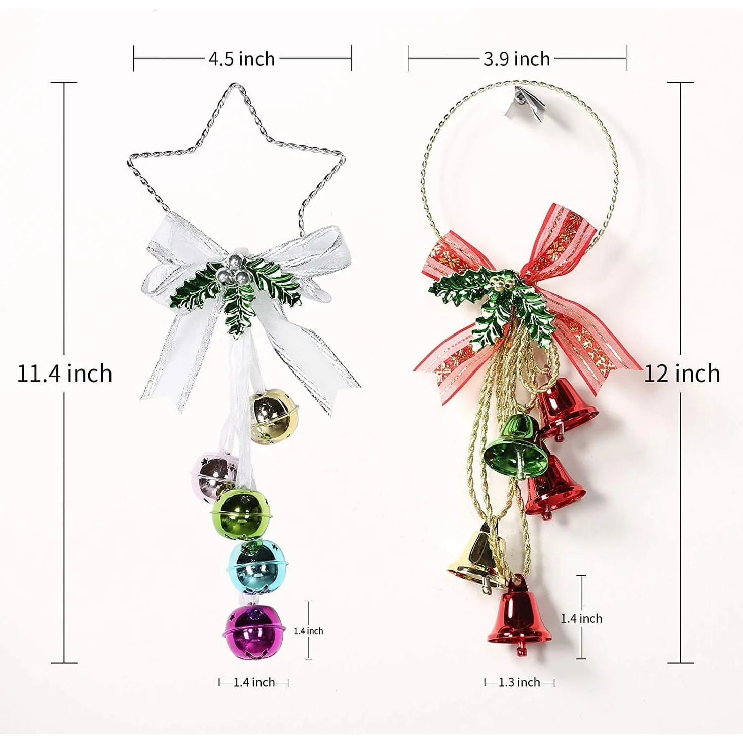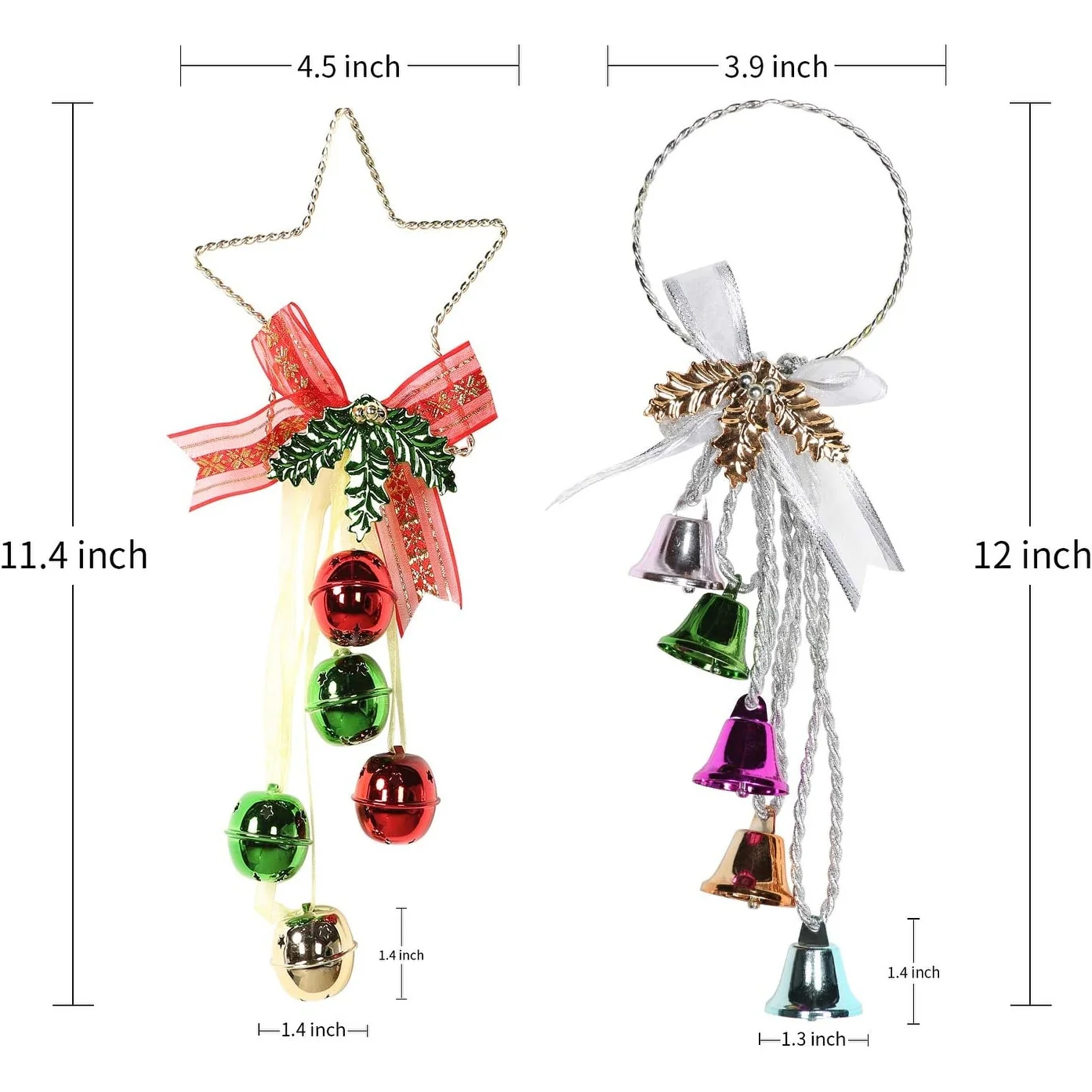 Perfect Design for Christmas & Parties: This Christmas Ornament is designed with 5pcs of metal jingle bells with a metal ring in bright plating colors with ribbon bow in Christmas classic colors. They will add more fun and novelty to your Christmas party, and you can hang it on anywhere you like.